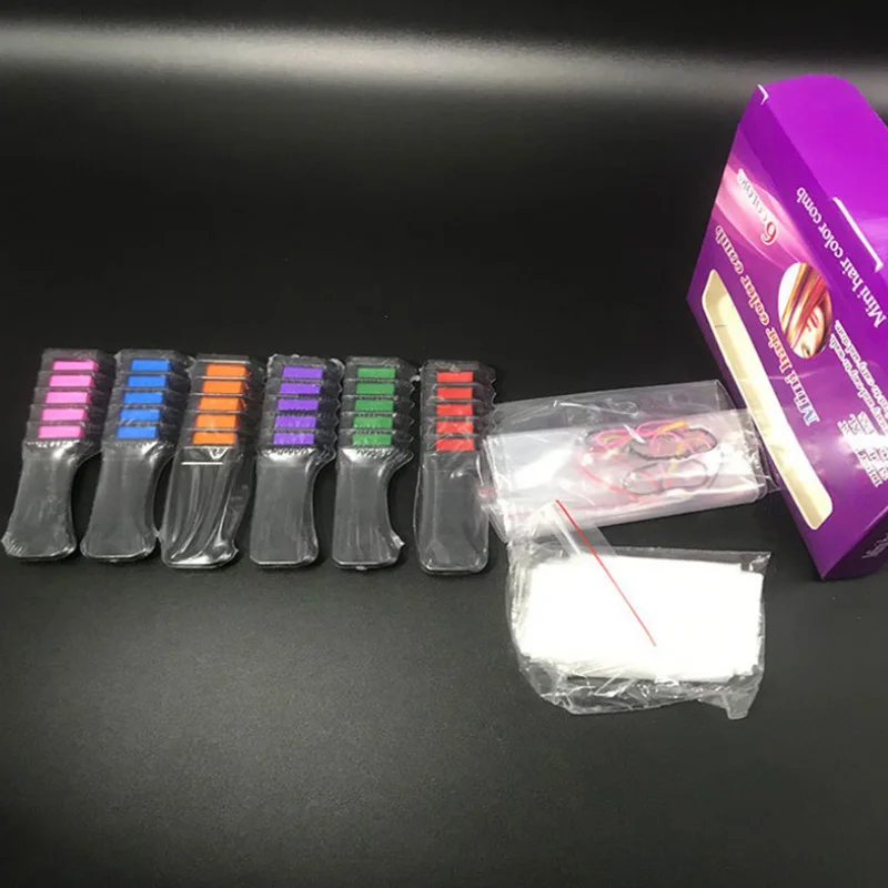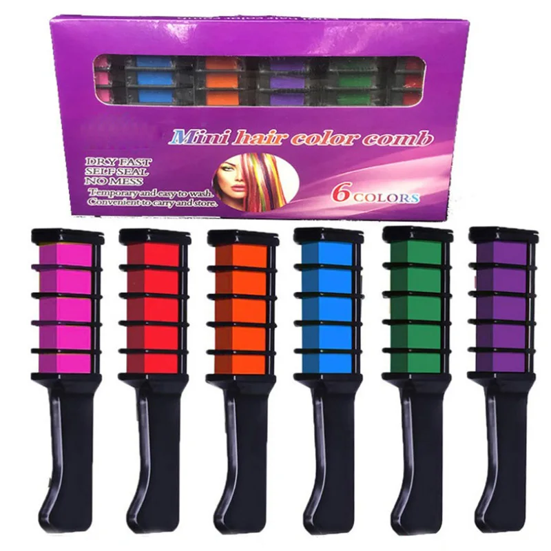 Временные Для женщин Краска Для Волос Мелки карандаши 6 цветов; Обувь для ночного вечерние волос многоцветная печать, краска для волос гребень для ухода за волосами Инструменты для укладки волос