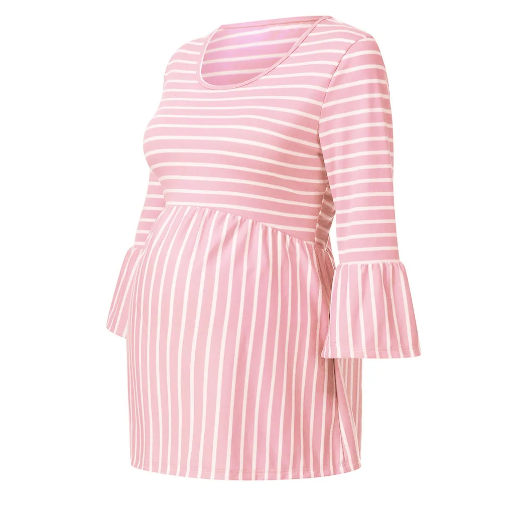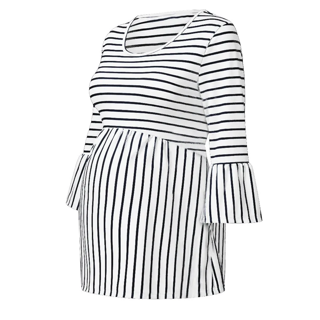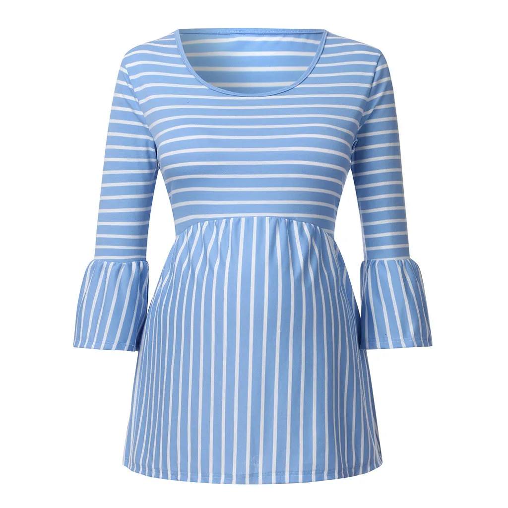 Женская полосатая блузка с круглым вырезом и рукавом 3/4 для беременных женщин