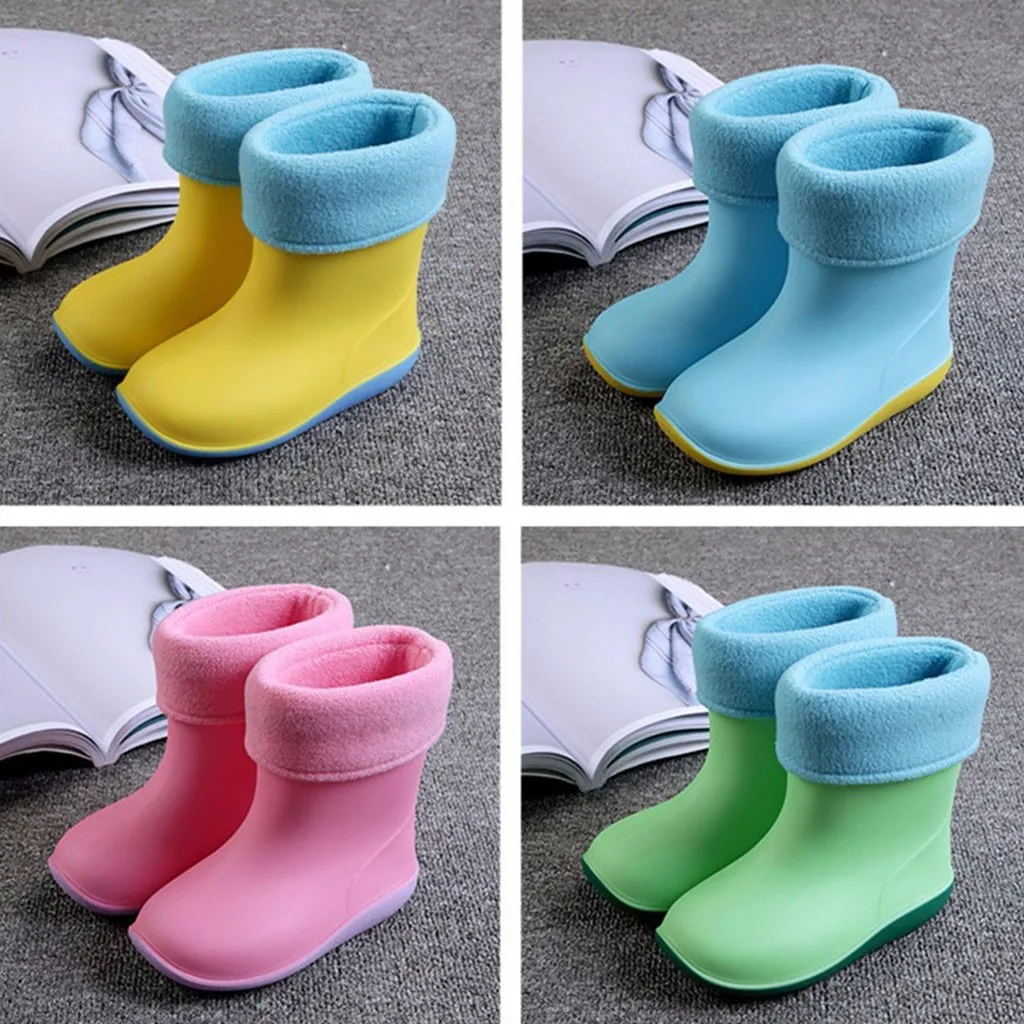 Водонепроницаемые Детские однотонные резиновые теплые детские резиновые сапоги; детская непромокаемая обувь