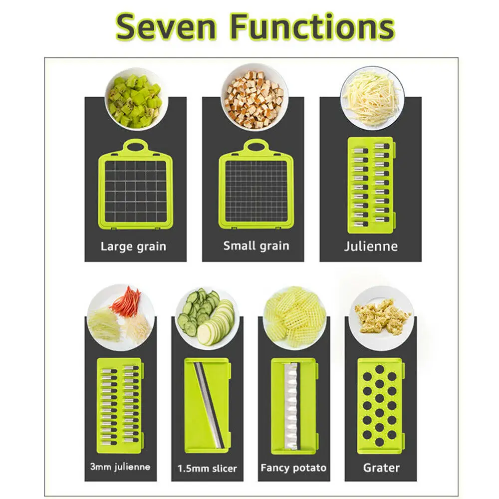 Описание: Овощерезка кухонные аксессуары мандолин овощерезка фруктовый резак овощечистка картофеля морковь сыра овощная терка Информация о продукте: Материал: высокое качество PP Функция: 7 в 1 Применение: овощи и фрукты Фрукты и овощи, появляющиеся на фотографиях, не включены. Не позволяйте детям прикоснуться к лезвию. Пожалуйста, очистите продукт после каждого использования. При резке коротких ингредиентов вам нужно использовать ручную защиту, чтобы не повредить руки. Характеристики: Основные характеристики: Очень подходит для приготовления низкоуглеводной и здоровой овощной лапши и макарон Изготовлен из высококачественного пищевого и натурального материала пшеничной соломы Легко чистить и выглядит красиво и стильно Вы можете легко получить 7 различных форм пищи по 7 лезвий-комбинаций Твердые овощи и фрукты можно легко нарезать Все части овощерезки можно легко разобрать для легкой очистки В комплект входит: 1 * овощерезка Примечания: 1. Замеры товара, лежащего на таблице, могут вызвать небольшую разницу. 2. Реальный цвет товара может немного отличаться от изображения на веб-сайте, вызванного многими факторами, такими как яркость вашего монитора и яркость света при фотосъемке. Спасибо за понимание!