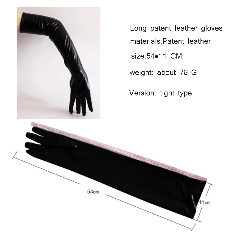 Размер: 54*11 см 1 см = 0,39 в материалы: Длинные лакированные кожанные перчатки Вес: 73 г