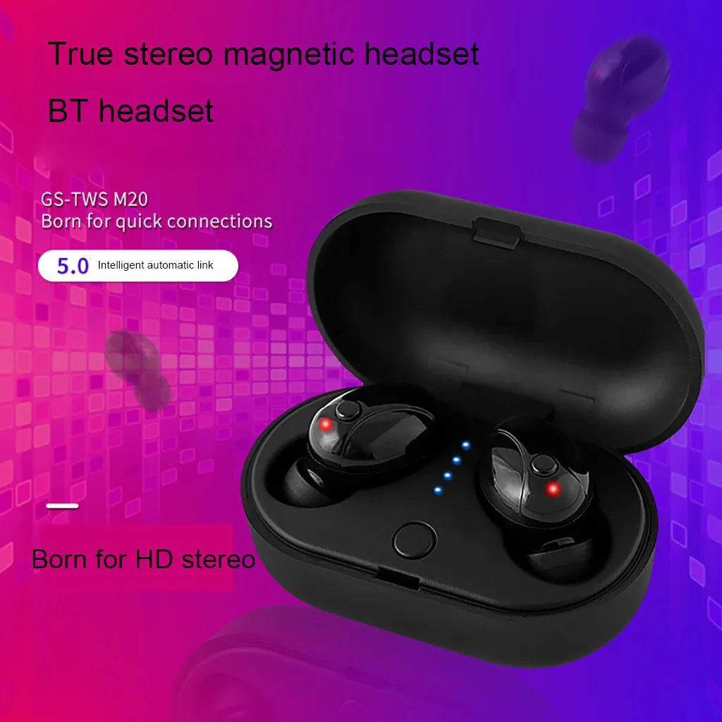 Название продукта: GS-TWS M20 Версия Bluetooth: V5.0 Время прослушивания песни: 5-6 часов Время зарядки: 1-2 ч Время работы в режиме ожидания: 150 часов Аккумулятор для наушников: 50 мАч X 2 Зарядным устройством батареи: 3,7 V 500 MAH Рабочий диапазон: более 10 метров Диапазон частот: 2,4 г-2,48 ГГц Поддержка соглашения: HES/HSP/AVRCP/A2DP Совместим со всеми Android и для устройств IOS, планшетов с поддержкой Bluetooth и так далее.Посылка Содержание:
