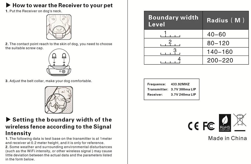 ●Максимальный радиус управления беспроводной забор для домашних животных центральный передатчик 200 м.