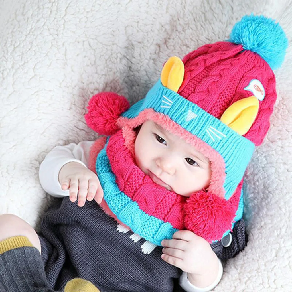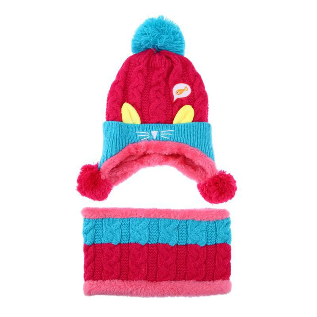 Комплект из 2 предметов для маленьких девочек и мальчиков; теплая зимняя вязаная шапка с рисунком + шарф; теплый комплект
