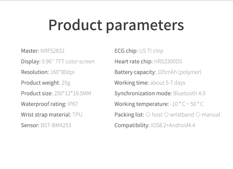 Мониторинг ЭКГ определяет здоровье сердца, традиционный метод занимает много времени и трудоемкий, и может контролироваться в любое время и в любом месте с помощью браслета. На основе измерения электрокардиограммы, происходит сбор живого электрического сигнала сердца, и электрокардиограмма может быть просмотрена в данных мобильного приложения, чтобы понять состояние здоровья сердца.