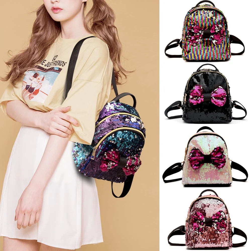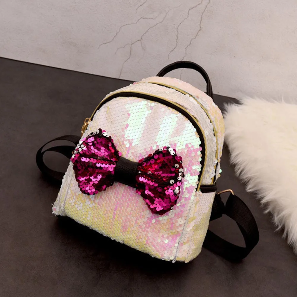 Женский рюкзак с блестками и украшением в виде банта, водонепроницаемый и износостойкий, удобный и прочный, простой и модный, милый и красивый. Он имеет небольшой размер, но большой вместимости для хранения мобильных телефонов, кошельков, косметики, зонтиков и других предметов, является идеальным аксессуаром для встреч, путешествий, шоппинга и свидания.