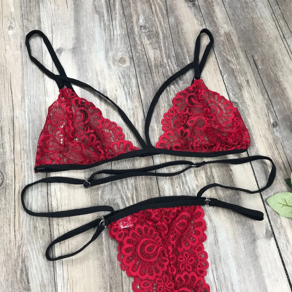 Женское кружевное нижнее белье, бюстгальтер на бретельках и трусики, бандажный комплект