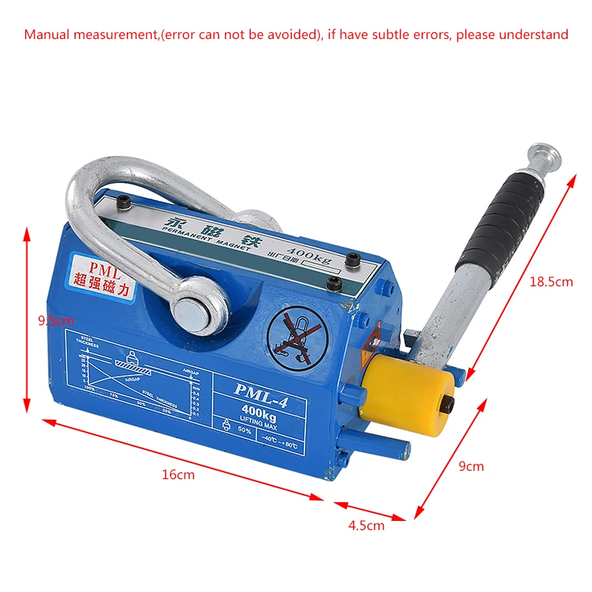 Название продукта: магнитный кранНомер модели: YS-400Спецификация: Обычный 400 кг; Обновление 400 кгЦвет: Обычный желтый, синий.Материал: Неодимовый магнитНоминальная грузоподъемность: 400 кгПрименимая стальная пластина: толщина 20-40 мм, Длина 800 ммРазмер: 164*90*9 ммВес: 10 кг Посылка:1 * магнитный кранИзображение: