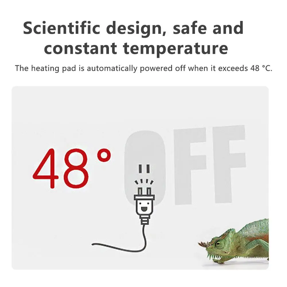 1、Luxury Reptile Heating Pad: Intelligent temperature control chip, the surface temperature is maintained at 38±5°, the surface is automatically de-energized over 48°, safe and constant temperature design, effectively resisting cold and low temperature.1*Reptile Luxury Heating Pad