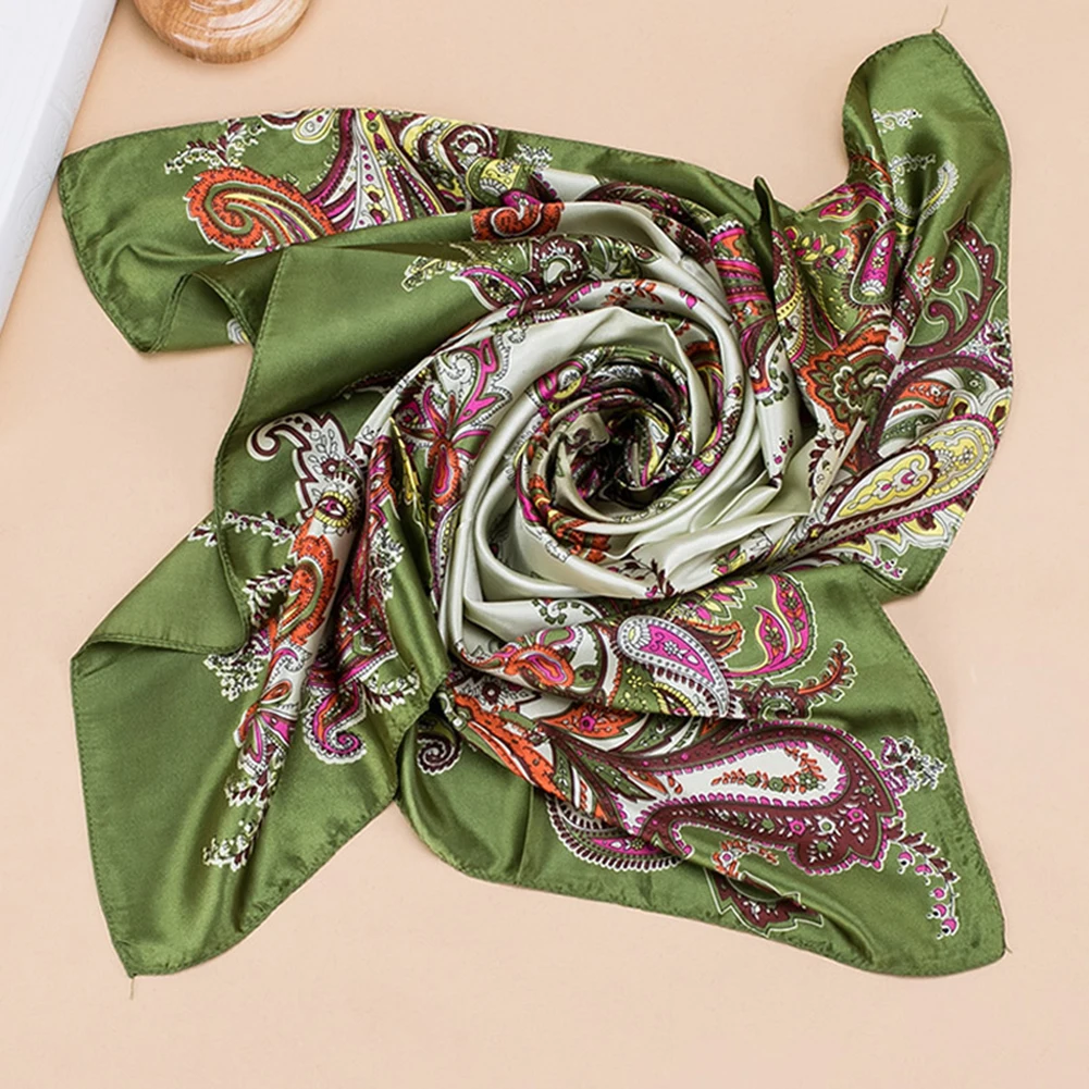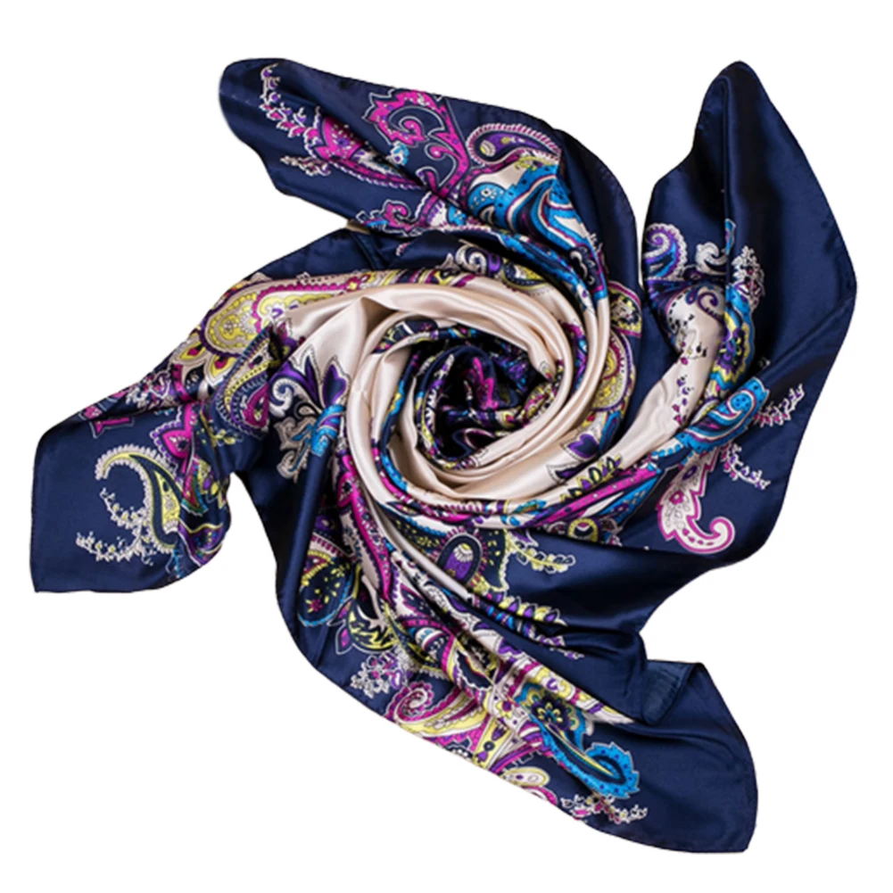Квадратное полотенце 90x90 см, имитация шелковой ткани, женский шарф с цветочным принтом на голову