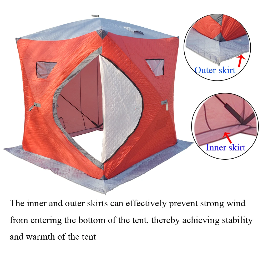 Наши палатки имеют множество советов: 1. Увеличенное пространство, размер 180x180x205см, вмещает 4 человека 2, есть 3 выхода воздуха, особенно когда обогреватель используется в палатке, есть воздуховыпускное отверстие для выхлопной трубы печи 3. Благодаря внутренним и внешним юбкам палатка обладает лучшей воздухонепроницаемостью, ветроустойчивостью и теплотой 4, с 4 окнами, ярче внутри палатки 5, трехъярусная палатка, плотный хлопок посередине, лучшая ветроустойчивость, лучшее удержание тепла 6, у нас есть 6 ледяных гвоздей, закрепленных с помощью 6 ледяных гвоздей, может сделать палатку более устойчивой 7, портативный рюкзак, легко носить с собой
