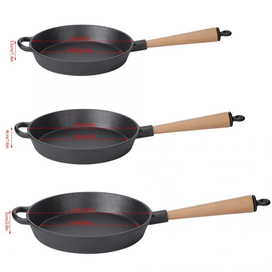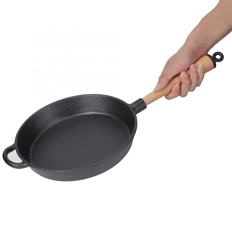 Домашняя кухонная утварь, чугунная сковорода, сковорода для приготовления стейка, сковорода с деревянной ручкой, алюминиевая посудомоечная машина, безопасный набор для приготовления пищи