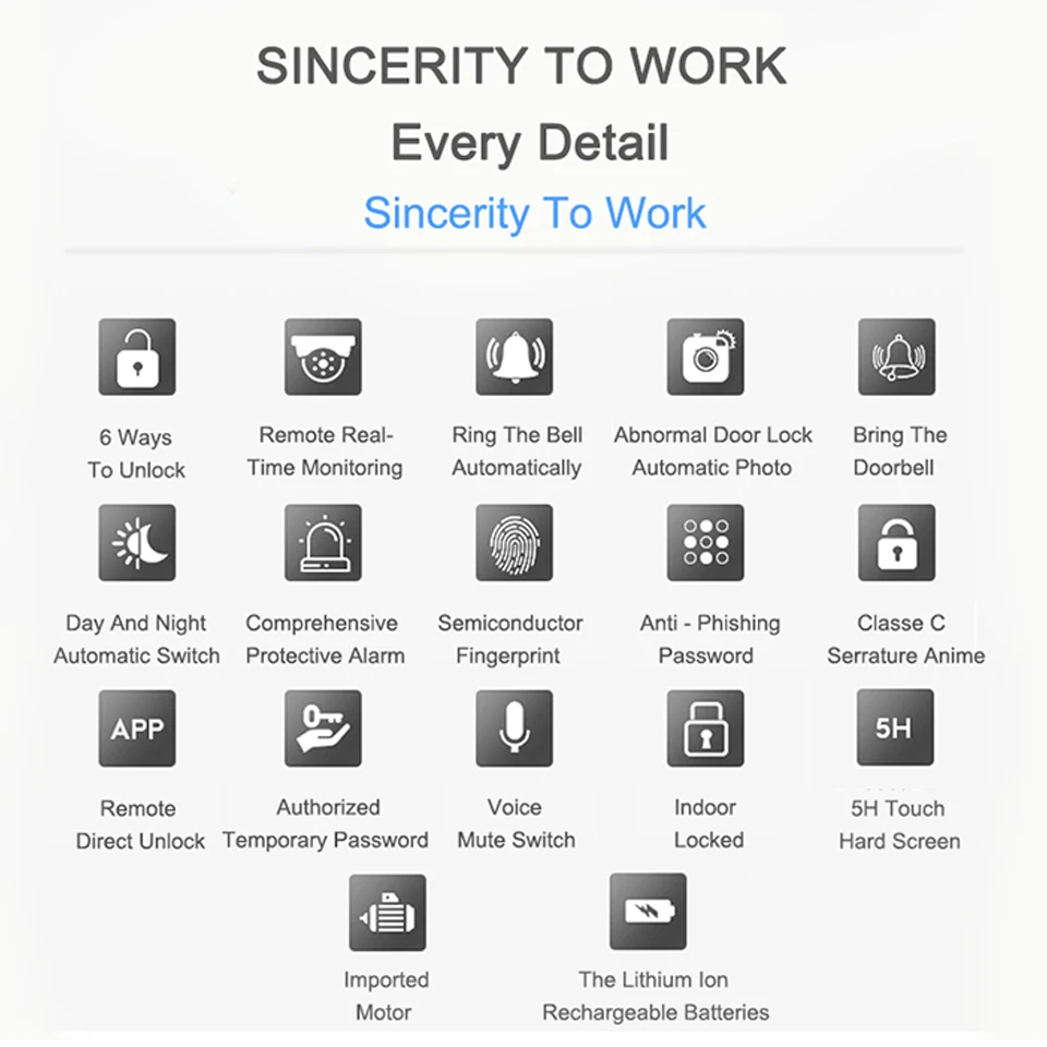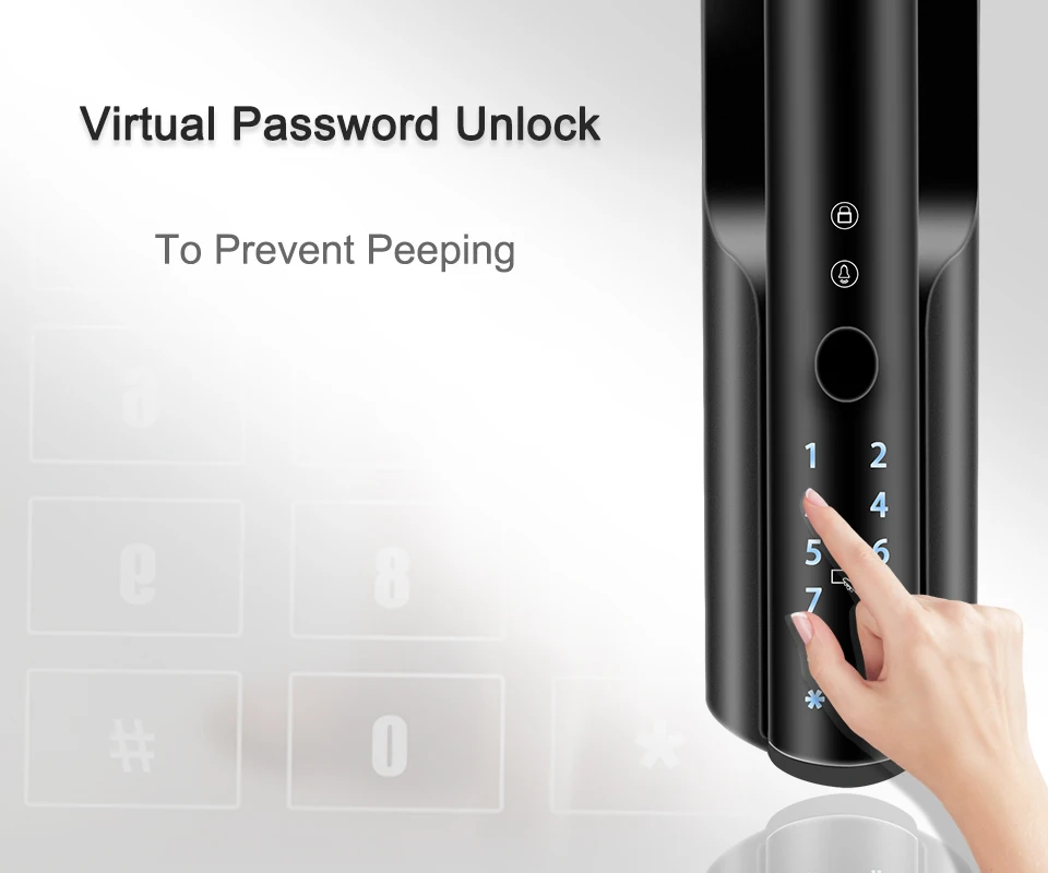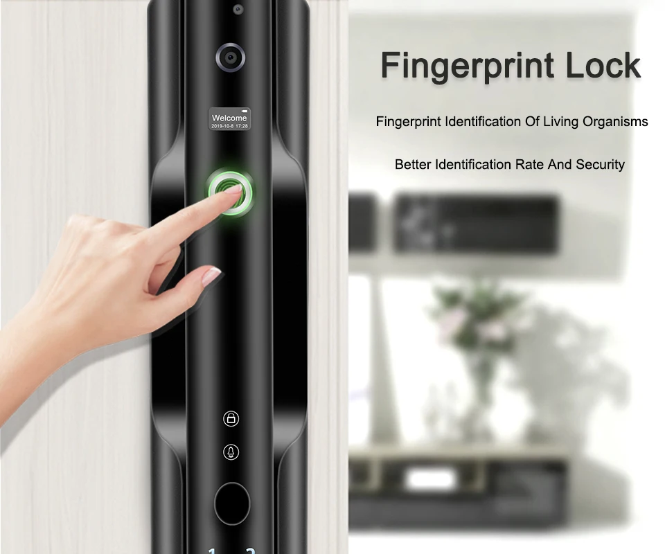 Умный Замок с камерой. 1. Откройте дверь: отпечаток пальца + Приложение + Bluetooth + пароль + шлюз + карта + ключ, комбинация других способов, чтобы вы чувствовали себя в безопасности и удобстве. 2. Разблокировка приложения: большой круг, показанный на телефоне, является ключом разблокировки, пользователь может нажать, чтобы открыть замок. Этот метод имеет ограничение расстояния. 3. Двойная Аутентификация: с шифрованием отпечатков пальцев и двойной комбинацией отпечатков пальцев откройте дверь для вашей мебели, чтобы обеспечить двойную безопасность. 4. Ведущий алгоритм: принятие международного ведущего алгоритма отпечатков пальцев, зрелый и стабильный. 5. Сенсорная клавиатура: с емкостной сенсорной клавишей и светодиодный светильник, красивая и прочная, удобная в эксплуатации. 6. Автоматический замок: он автоматически блокирует дверь, когда вы закрываете дверь.