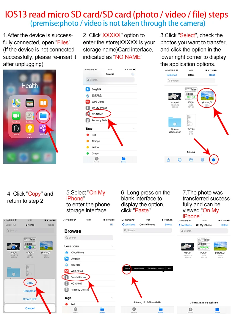 1. Фотографии и видео, скопированные, должны быть сделаны камерой, а не скопированы из Интернета или других каналов, потому что iOS защищена правами интеллектуальной собственности и не может распознавать эти неопознанные фотографии.