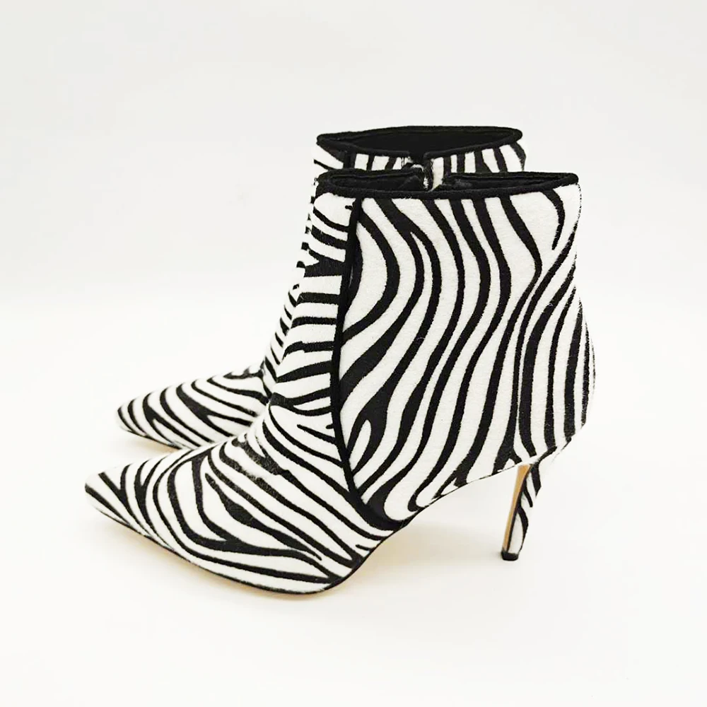 Женские короткие ботильоны на шпильке с принтом зебры из искусственного конского волоса; Женская пикантная обувь; Сезон зима-осень; Ботинки; Фабричные ботинки; Большие размеры; 2019