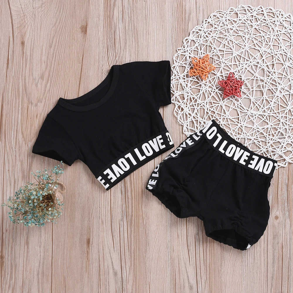 Новинка 2020 года, комплект детской одежды с буквенным принтом для мальчиков и девочек, 2 предмета, одежда для малышей футболка с короткими рукавами штаны, детский спортивный модный костюм на осень