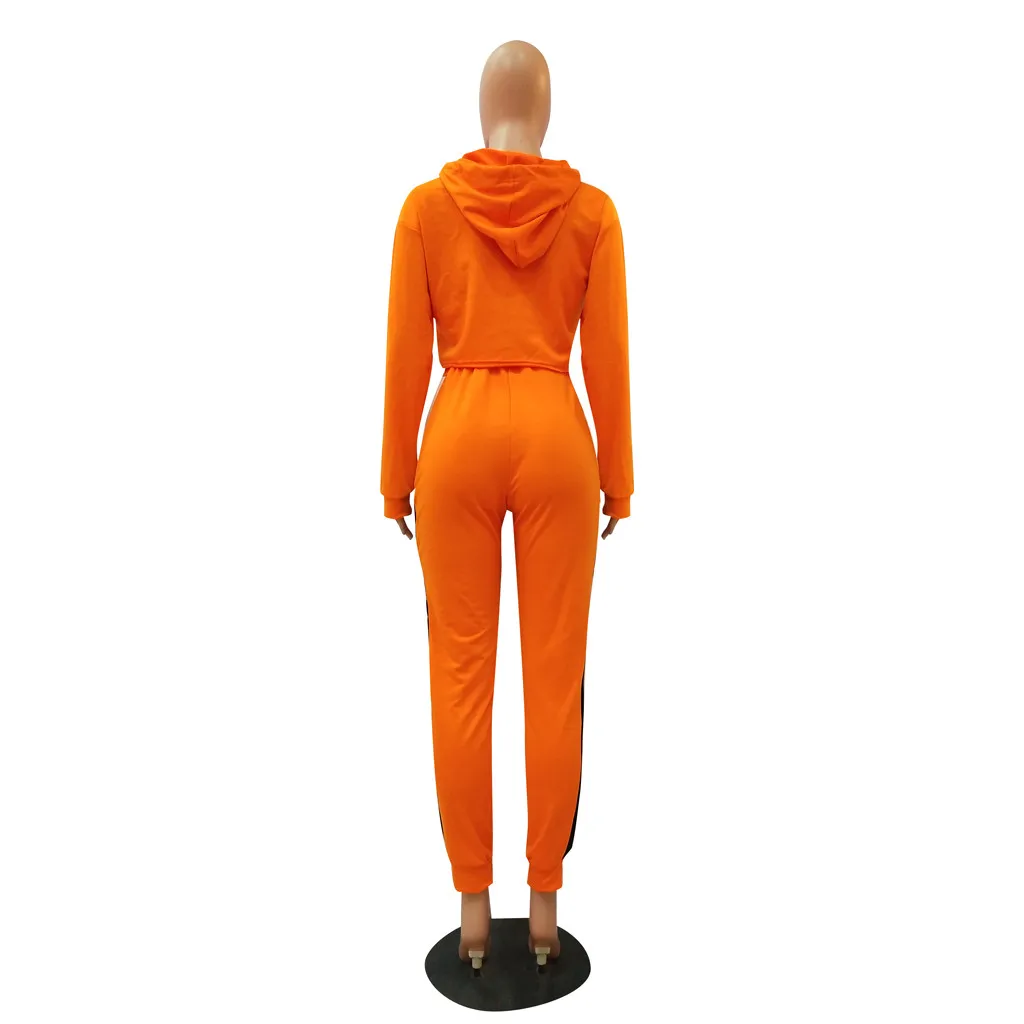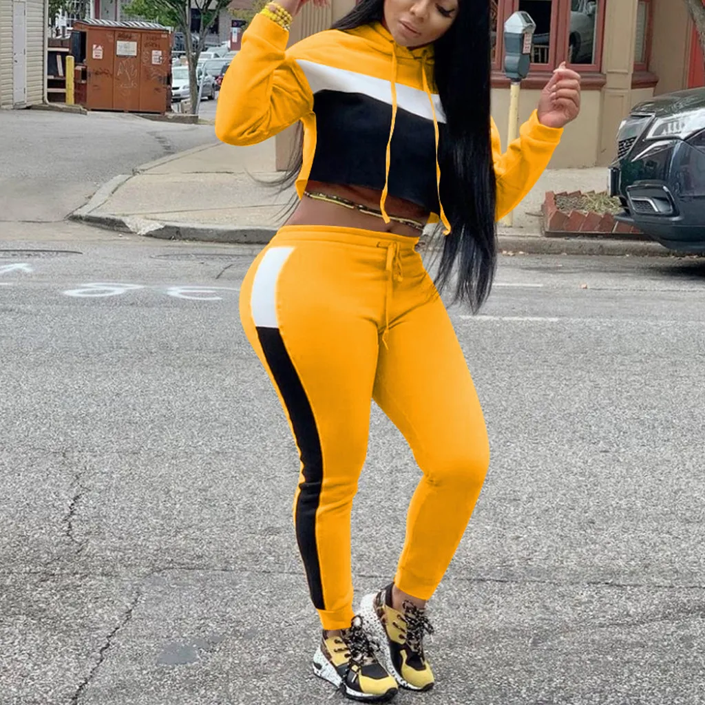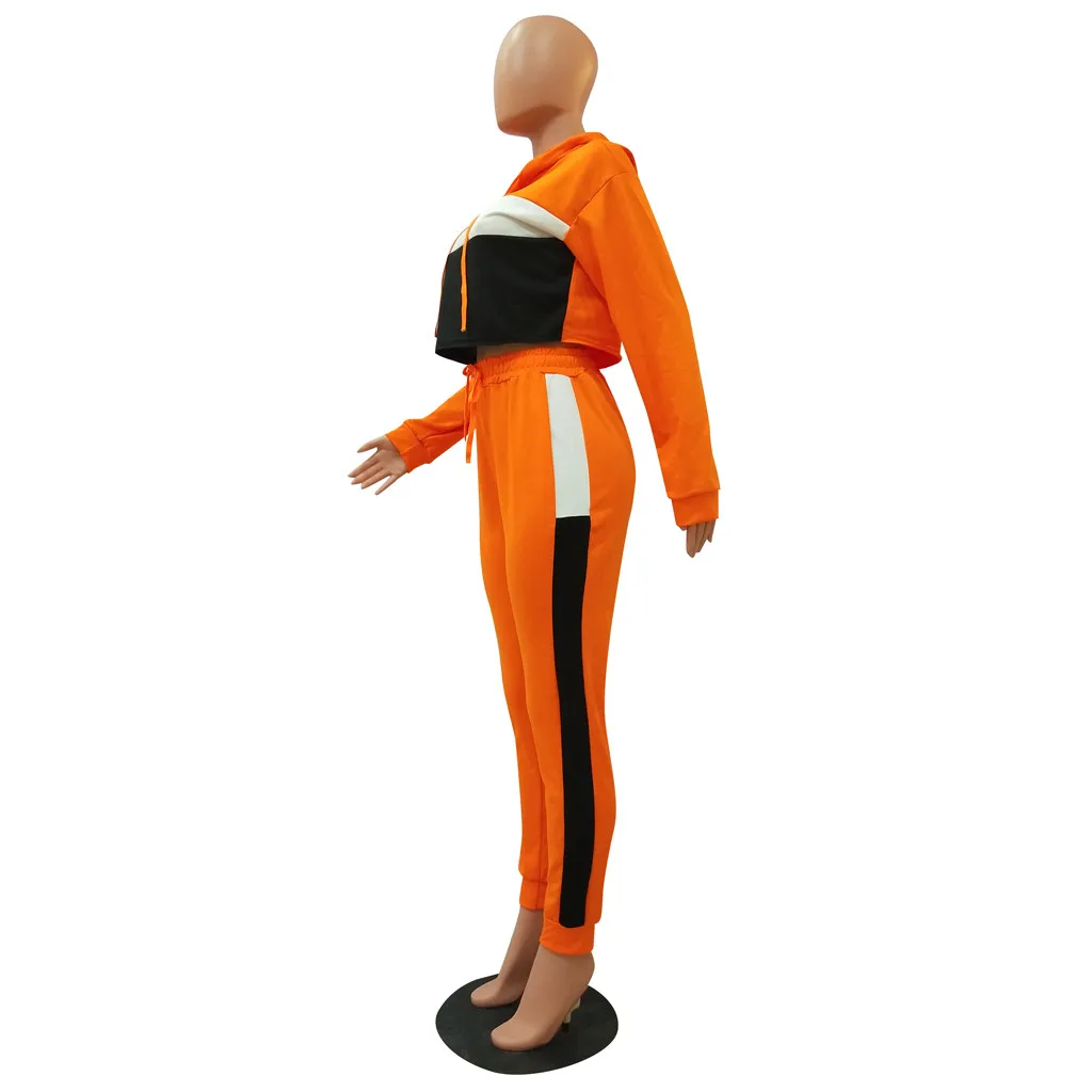 Женский спортивный костюм в стиле пэчворк с длинными рукавами и капюшоном