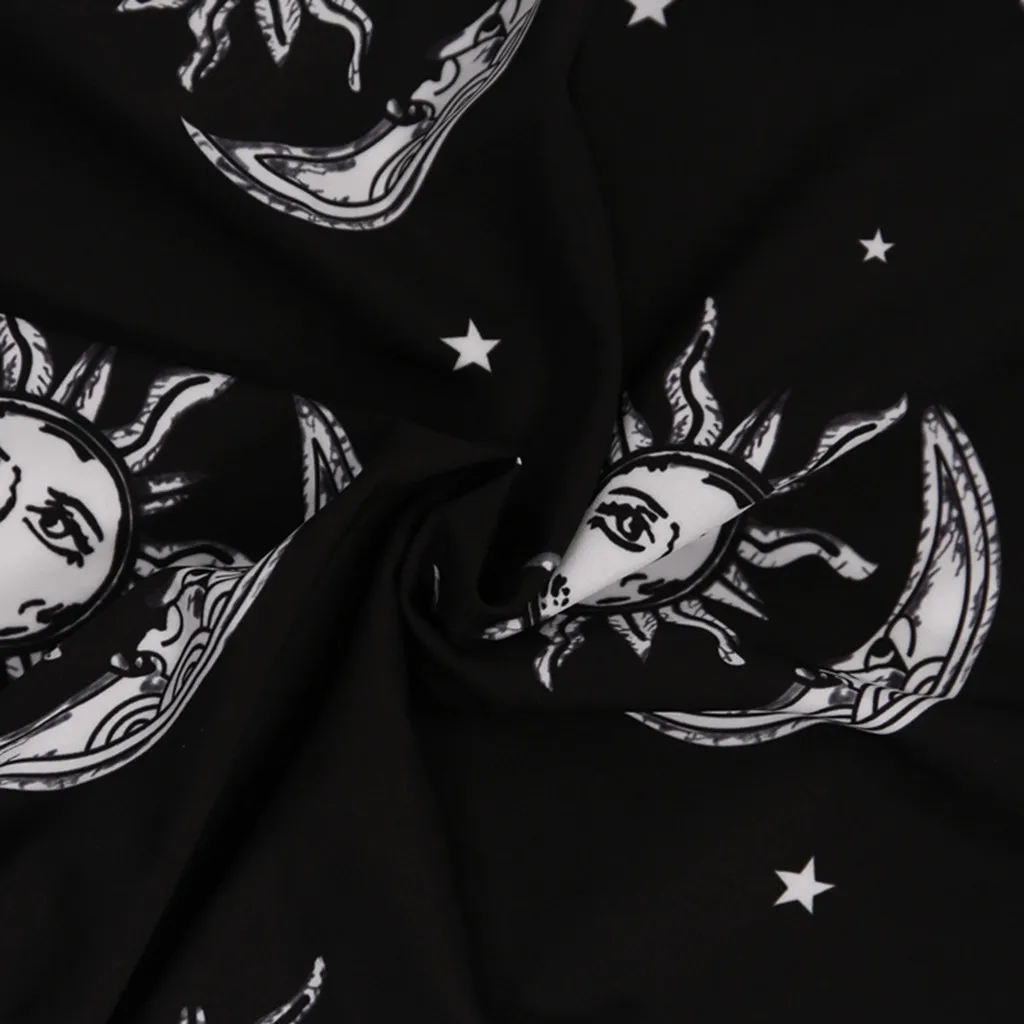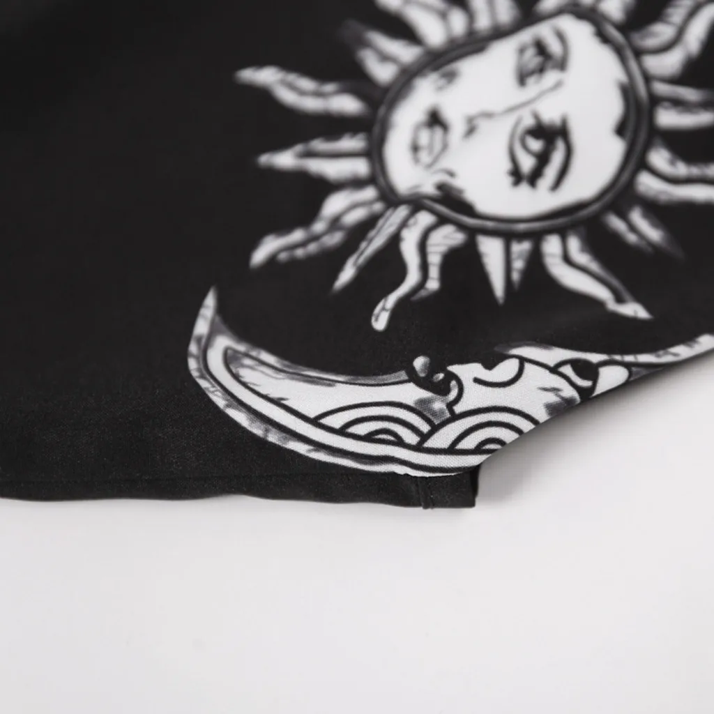 Женское облегающее мини-платье без рукавов с принтом уличного готического панк черного солнца Луны звезд