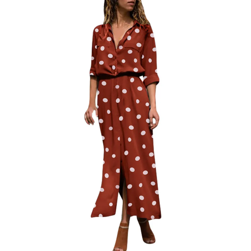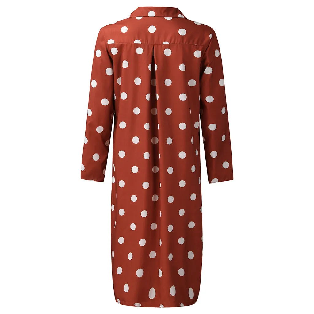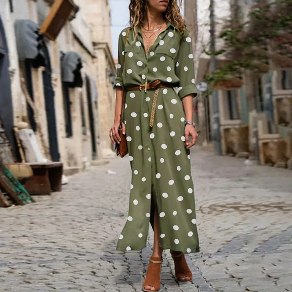 Женское летнее длинное платье в горошек с длинными рукавами и пуговицами, вечерние пляжные платья