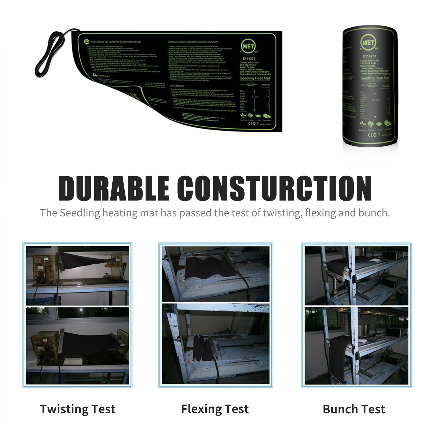 [Прочная конструкция]Нагревательный коврик для рассады прошел проверку скручивания, сгибания и связки, а также с нагревательной проволокой и толстой многослойной конструкцией.