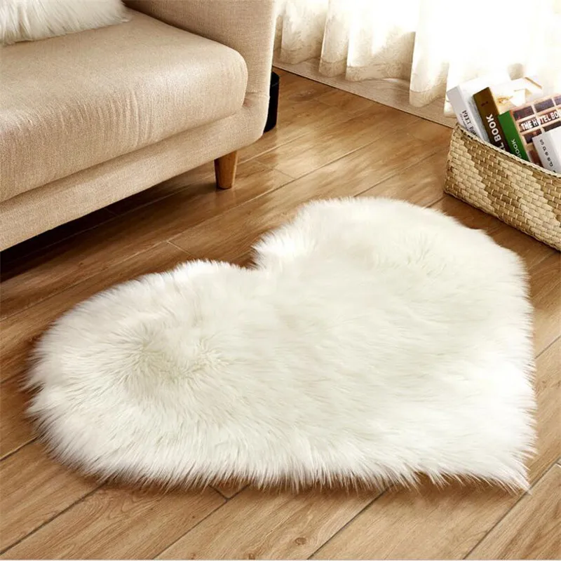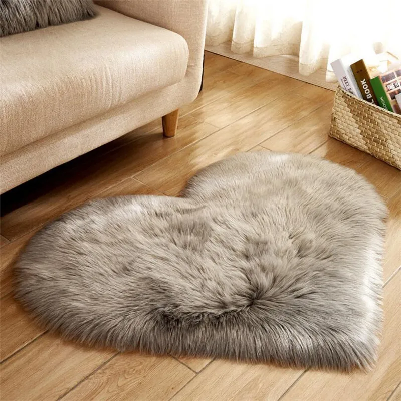 Длинный плюшевый ковер в форме сердца для гостиной, три размера, напольный ковер, ковер для гостиной, Одноцветный ковер для пола
