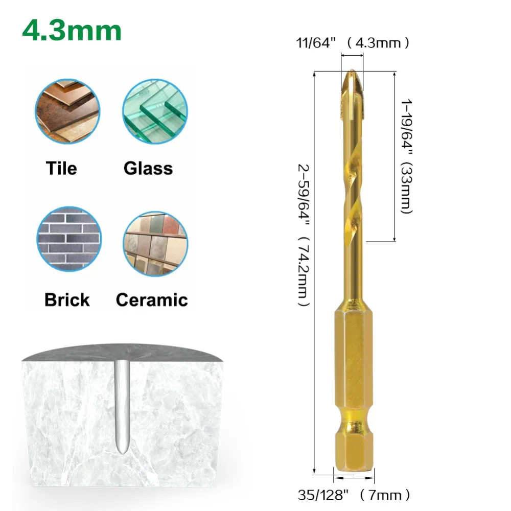 1 шт. 7 мм шестигранный хвостовик сверла из титана керамические сверла набор 4 6 8 10 12 мм Плитка Бетон крест наконечник отверстие бит плитка