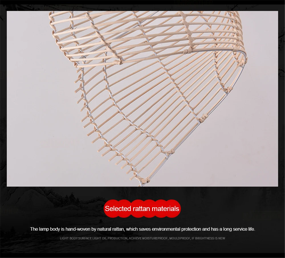 1.Standard 1.2m suspension line 2.International general E27 screw 3.Rattan hand-knitted body