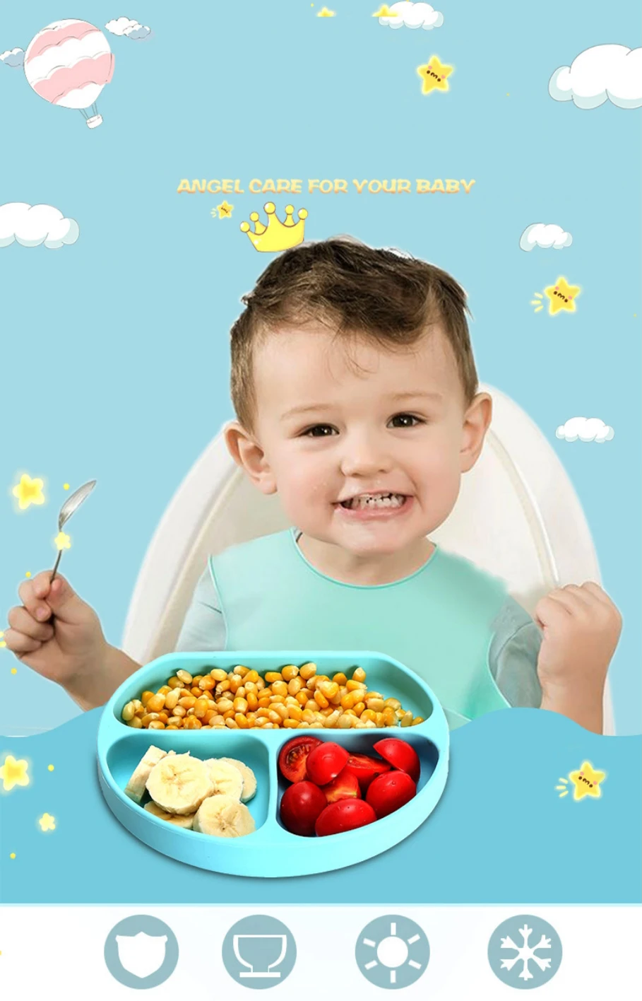 Описание: Материал: пищевой силикон Цвет: синий, зеленый, красный, розовый Диаметр пластины: 21*18,5*3 см Вес пластины: около 330 г Упаковка: 1 * Детская силиконовая пластина Примечание: 1. Может наблюдаться небольшая разница в отображении цветов из-за настроек монитора компьютера. 2. С различием в способе измерения, пожалуйста, позвольте 1-3 см в размере отклонения (1 см = 0,39 дюйма). Спасибо за понимание.
