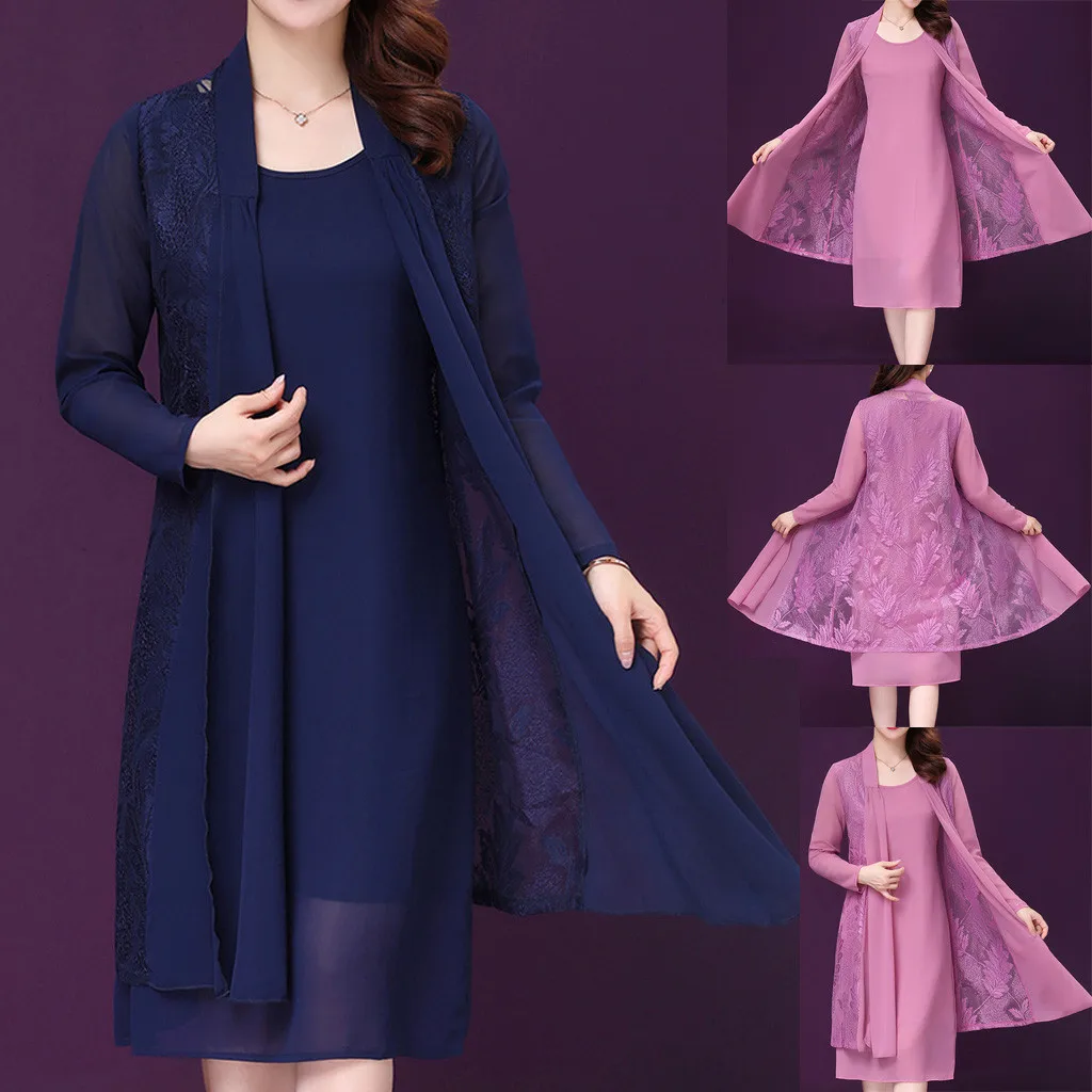 1 комплект, однотонные вечерние кружевные платья из шифона, кардиган для среднего возраста, комплекты размера плюс 4XL, элегантные платья для мам и женщин 2020