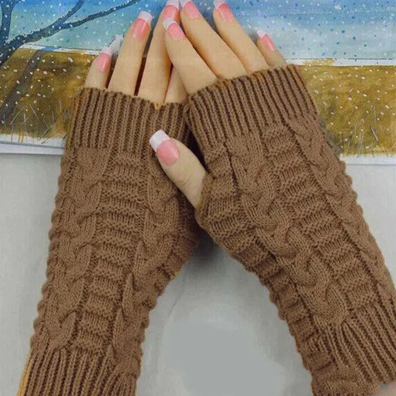 Женские и мужские вязаные перчатки без пальцев с коротким рукавом, теплые варежки