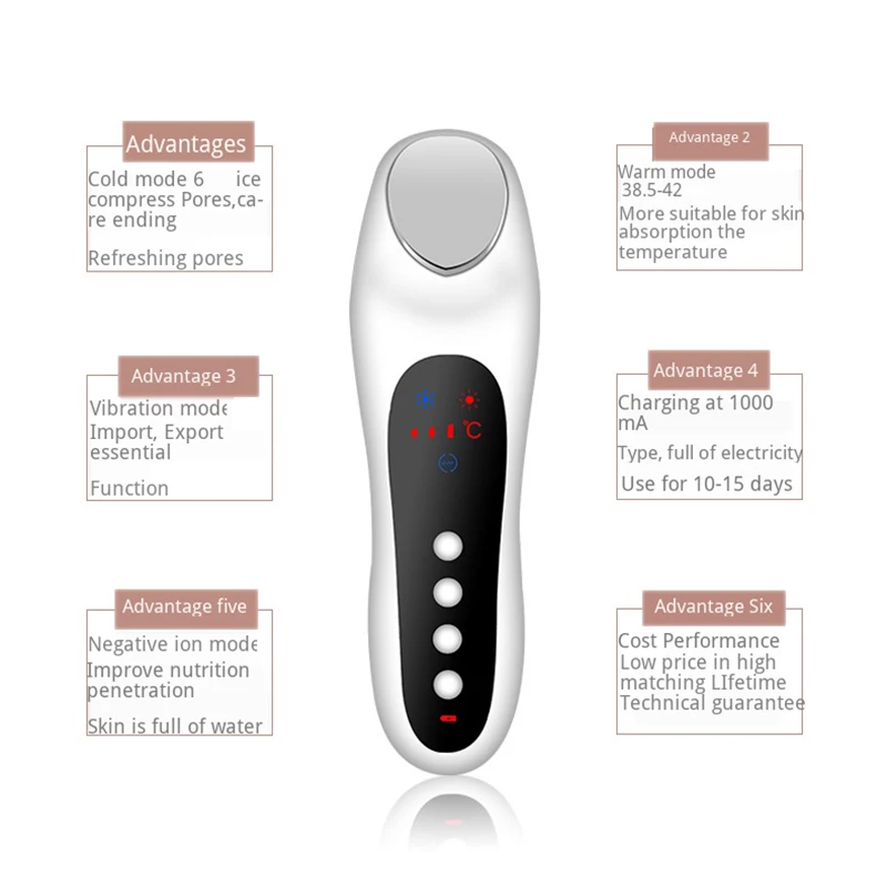 4. Не используйте продукт в одном и том же положении на коже более 10 секунд. Из-за воздействия микротока во время использования может возникать небольшое покалывание, что является нормальным явлением. Каждый режим не должен длиться более 3 минут.