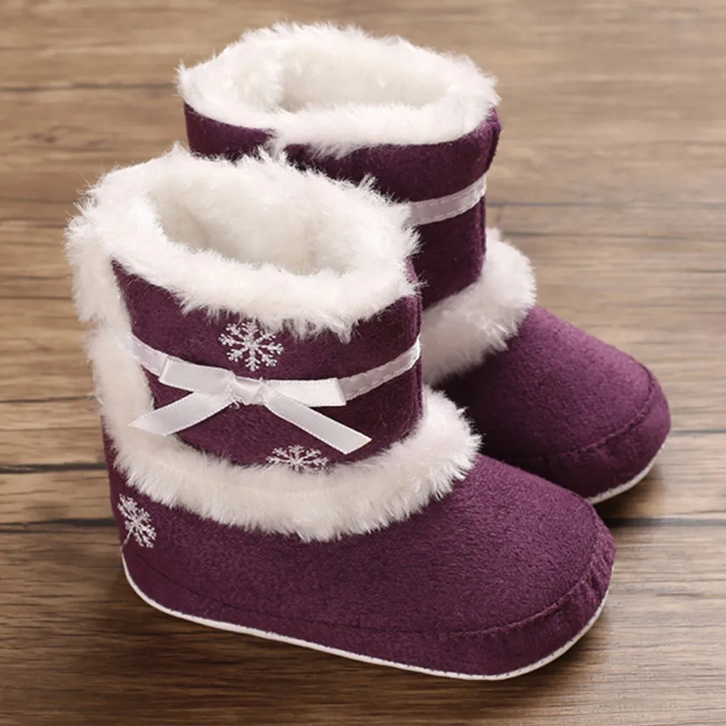 Милая зимняя теплая обувь с бантом для маленьких девочек