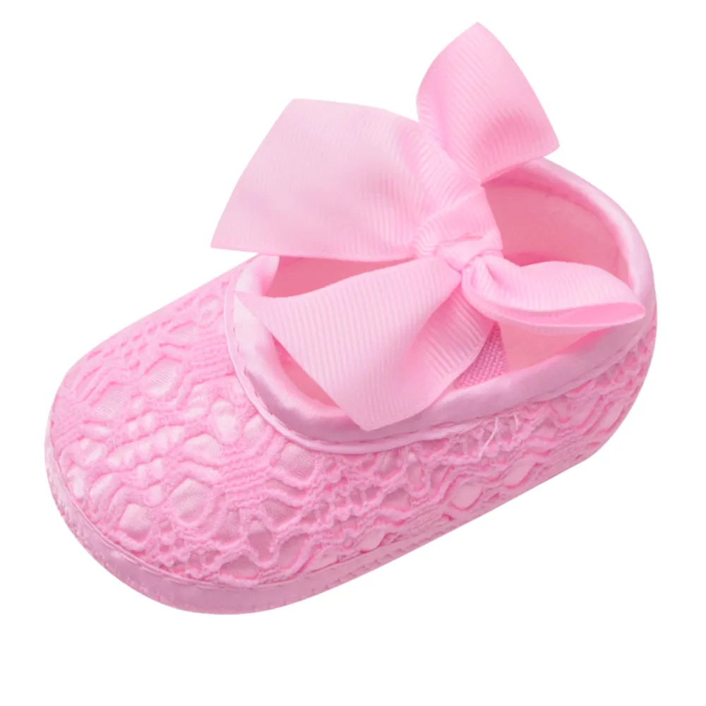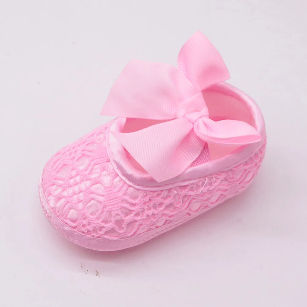Мягкая обувь для новорожденных девочек; нескользящая обувь на мягкой подошве с бантом; обувь для малышей