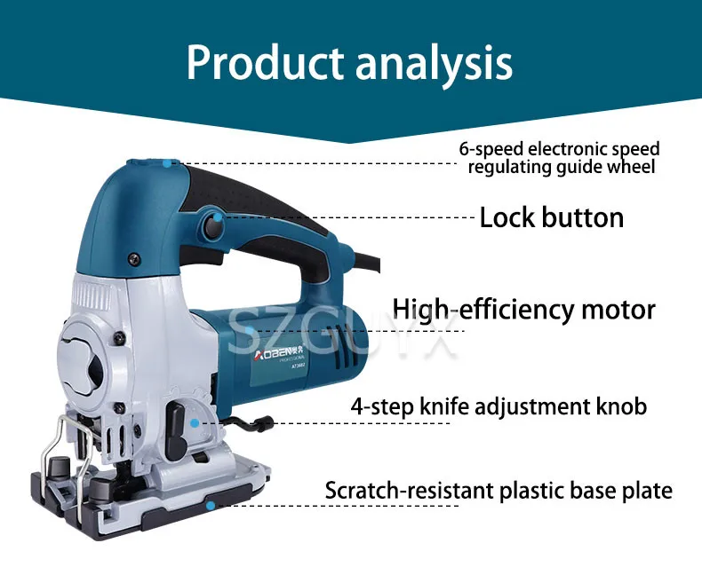 Режим питания: AC Эксплуатация: ручной Модель изделия: AT3602 Номинальное напряжение: 220 В Номинальная частота: 50 Гц Номинальная входная мощность: 600 Вт Объем резки: дерево 65 мм/сталь 10 мм Угол резки: -45 ° / + 45 ° Скорость без нагрузки: 500-2800р/мин Вес: 3,0 КГ