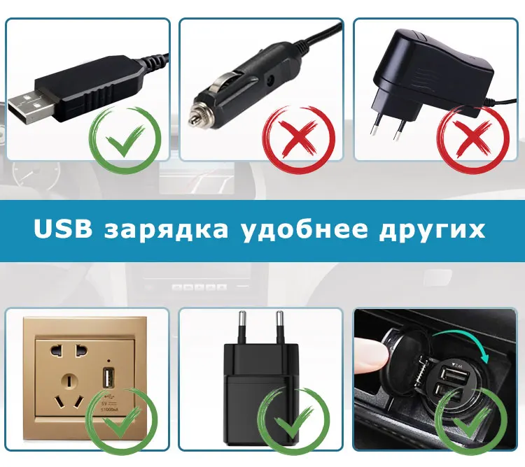 О: есть usb-кабель, вы можете подключить его к зарядному телефону, автомобильное зарядное устройство или внешний аккумулятор. Разное время зарядки