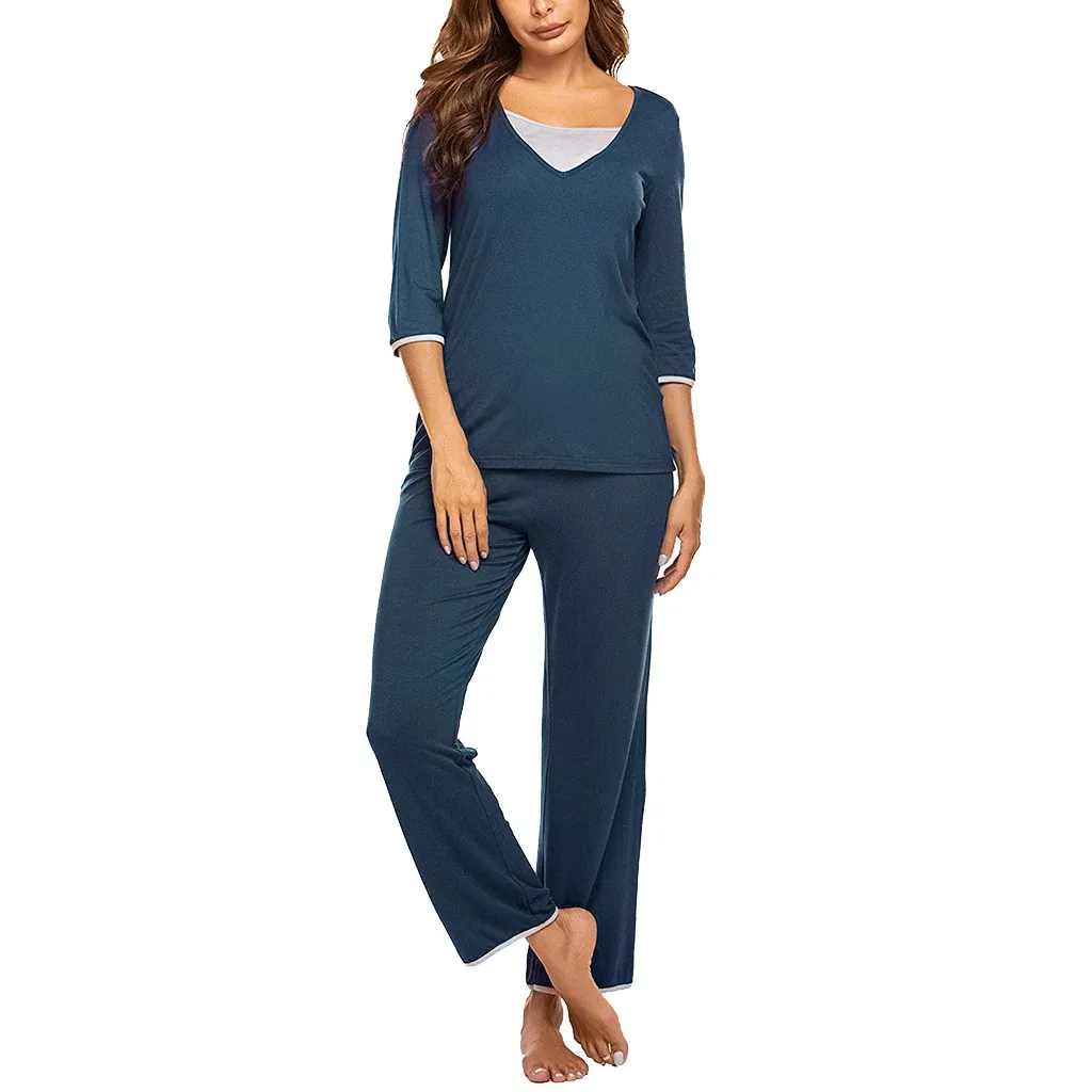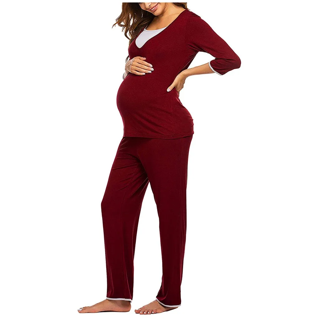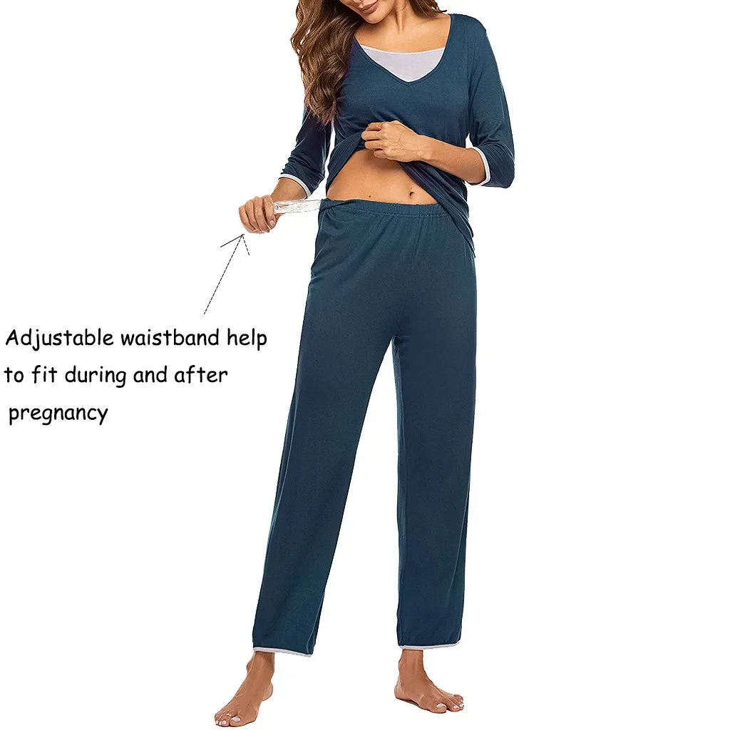 Женская футболка с длинными рукавами для беременных и малышей, топ + штаны, пижамный комплект, костюм 3/4