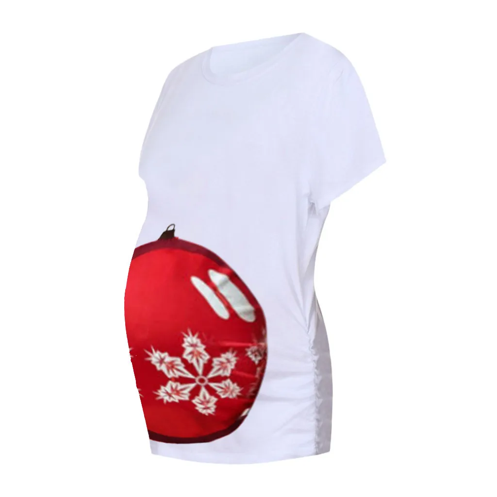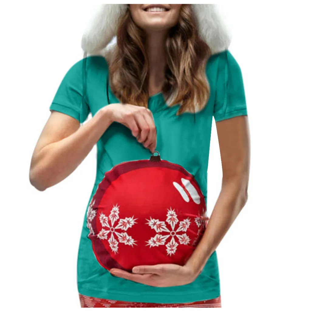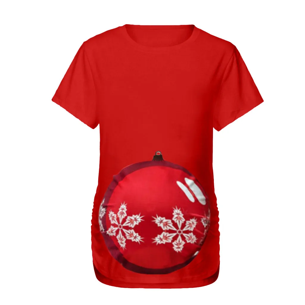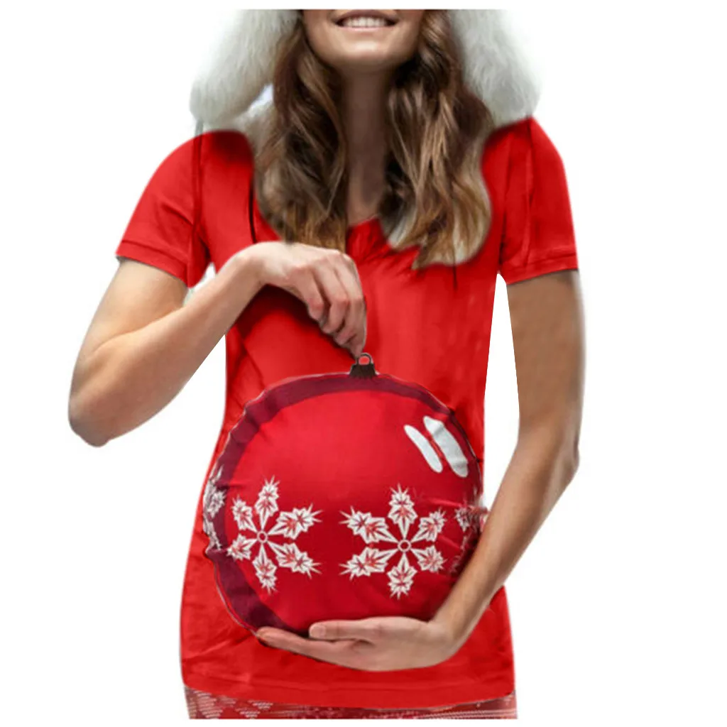 Женская рождественская футболка с короткими рукавами и круглым вырезом для беременных, топы для беременных