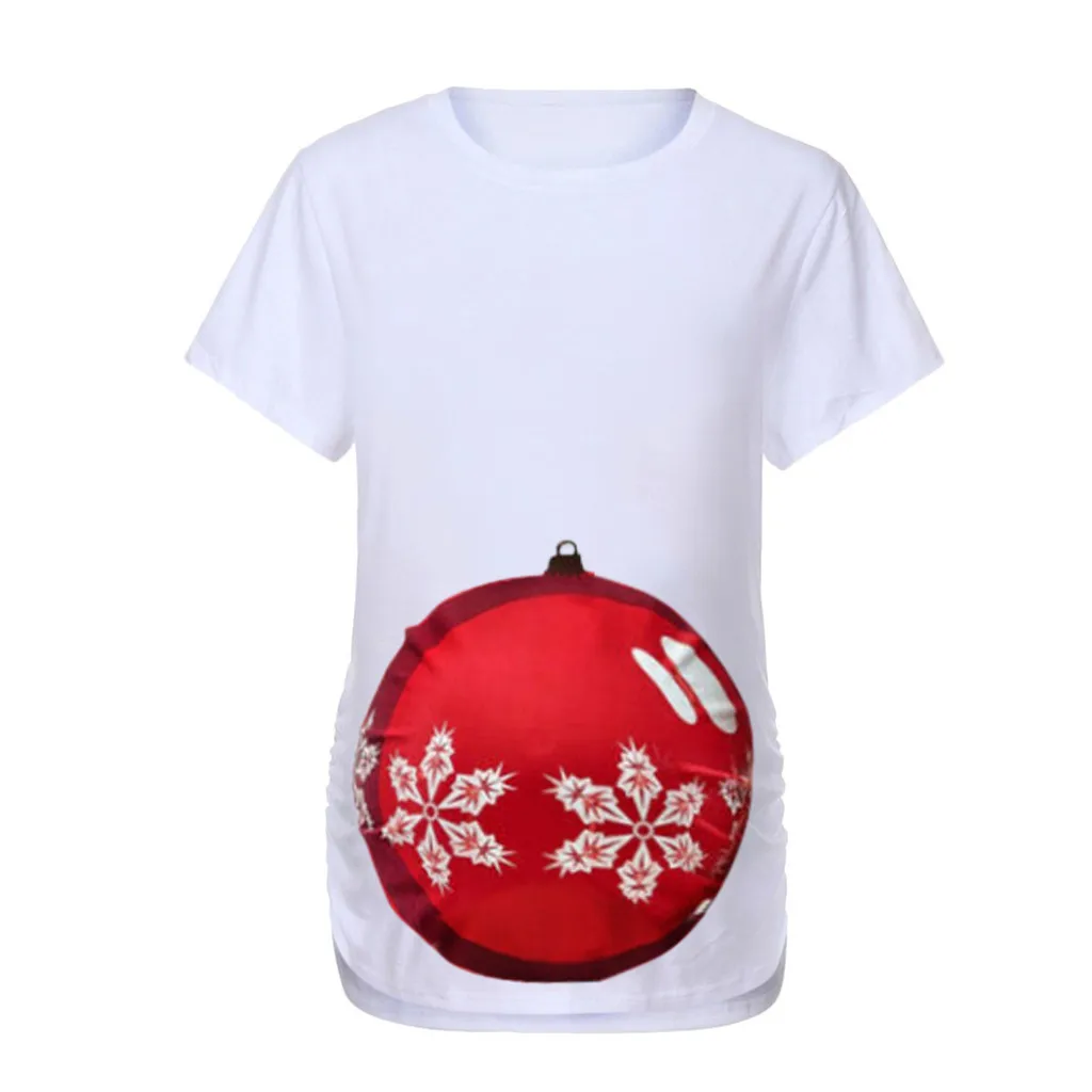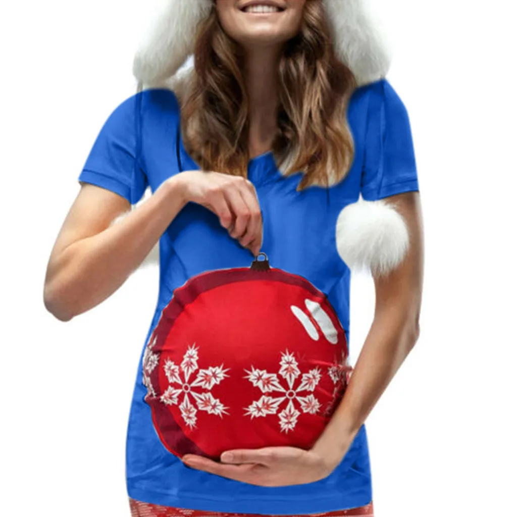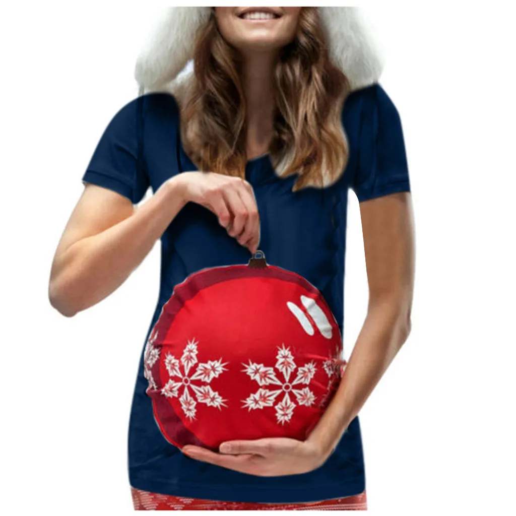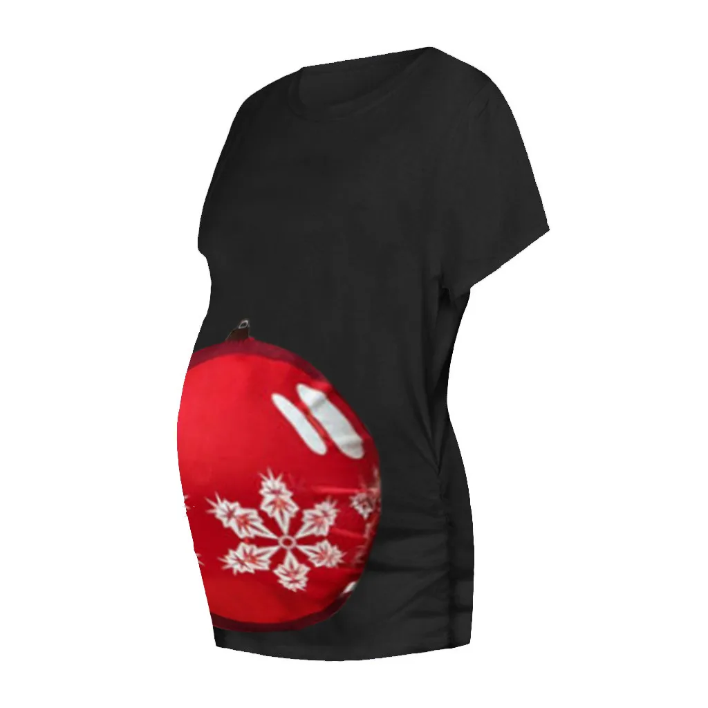 Женская рождественская футболка с короткими рукавами и круглым вырезом для беременных, топы для беременных