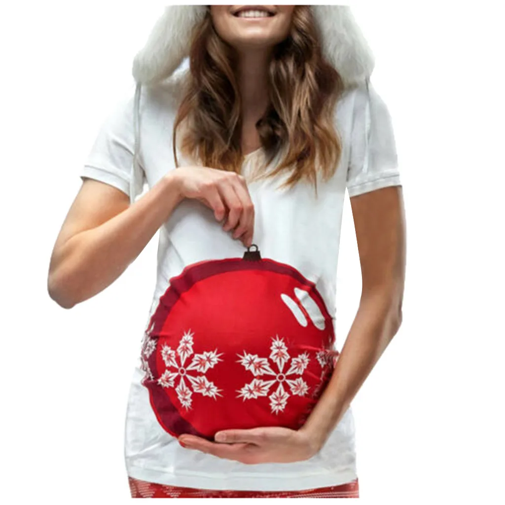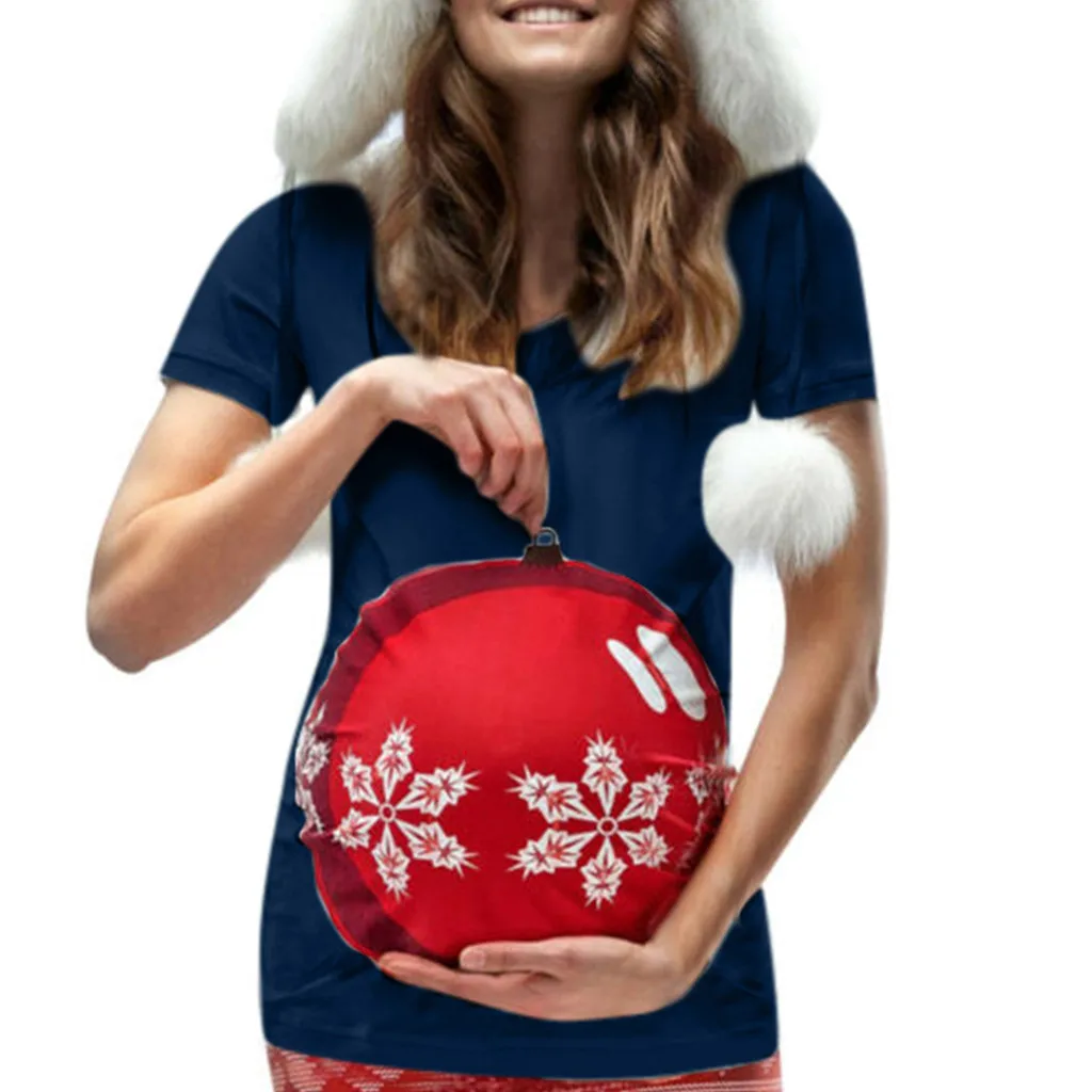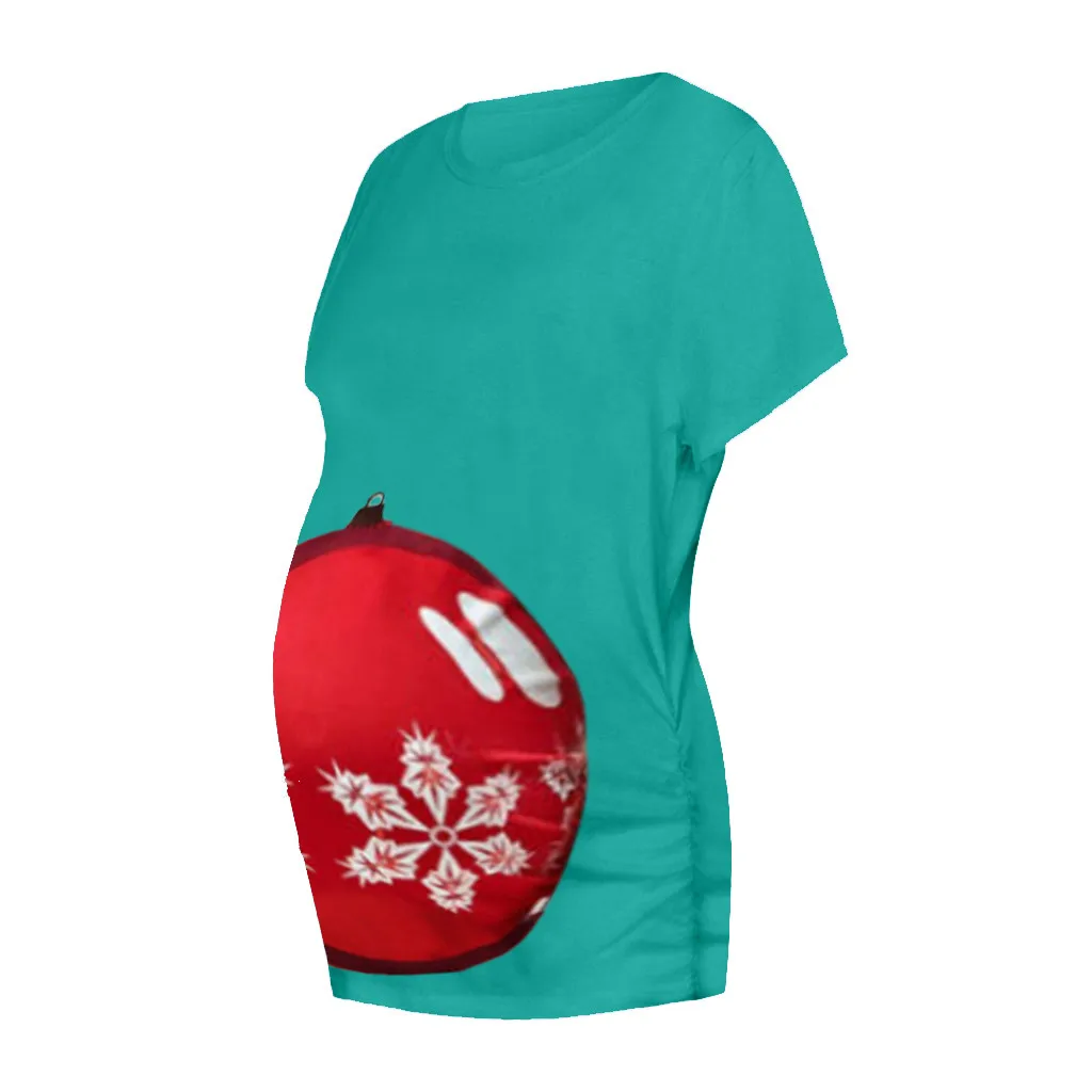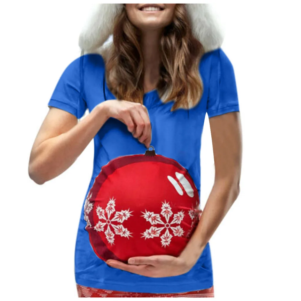 Женская рождественская футболка с короткими рукавами и круглым вырезом для беременных, топы для беременных