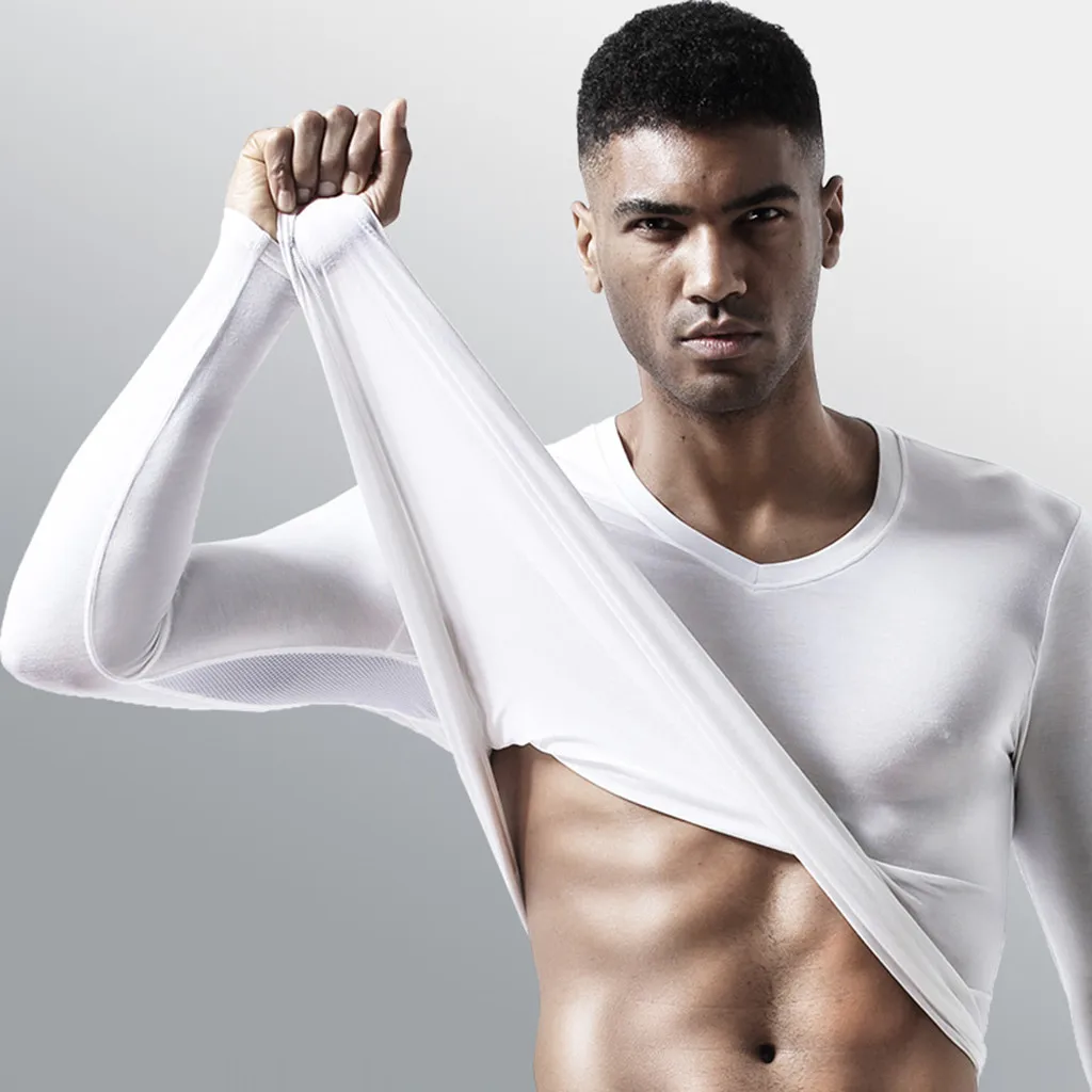 Мужское эластичное тонкое дышащее термобелье, сетчатая толстовка, топ, блузка, Высококачественная зимняя теплая одежда для сна, топы, рубашки