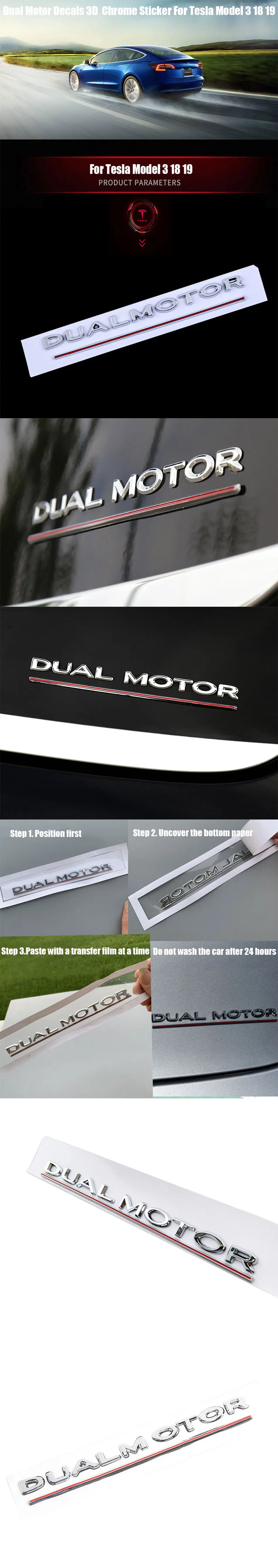 Для Tesla Model 3 Dual Motor наклейки 3D ПВХ Автомобильный задний багажник хромированная эмблема наклейка значок