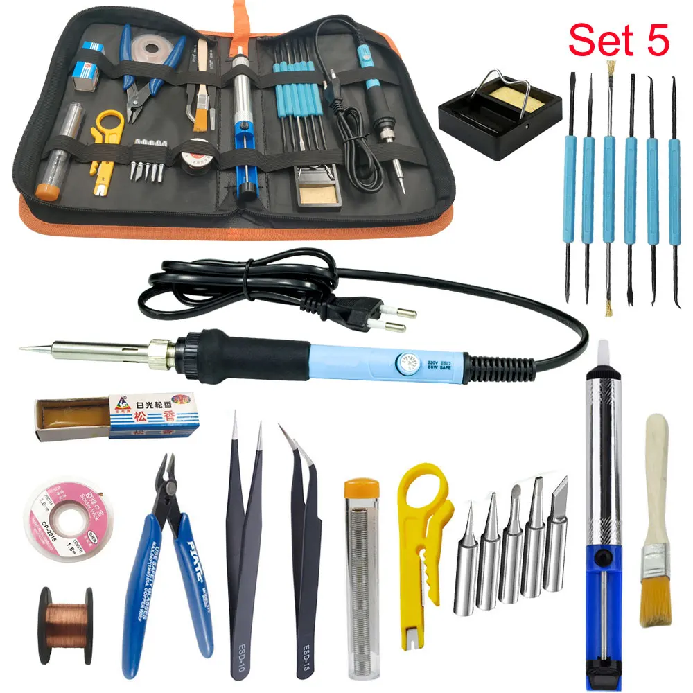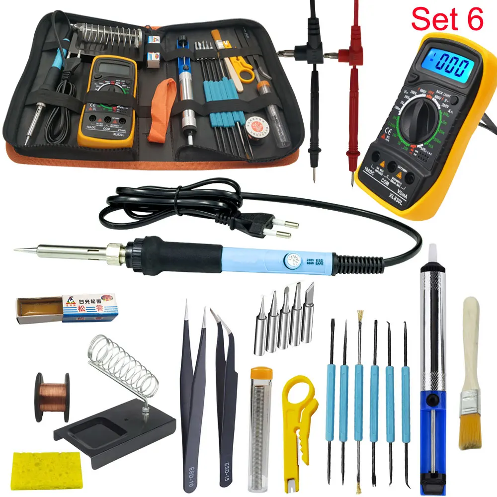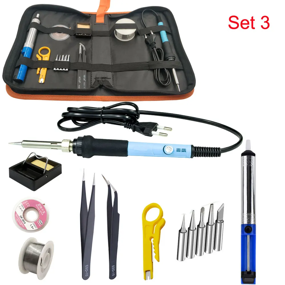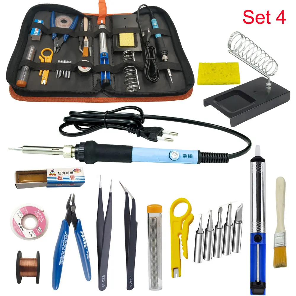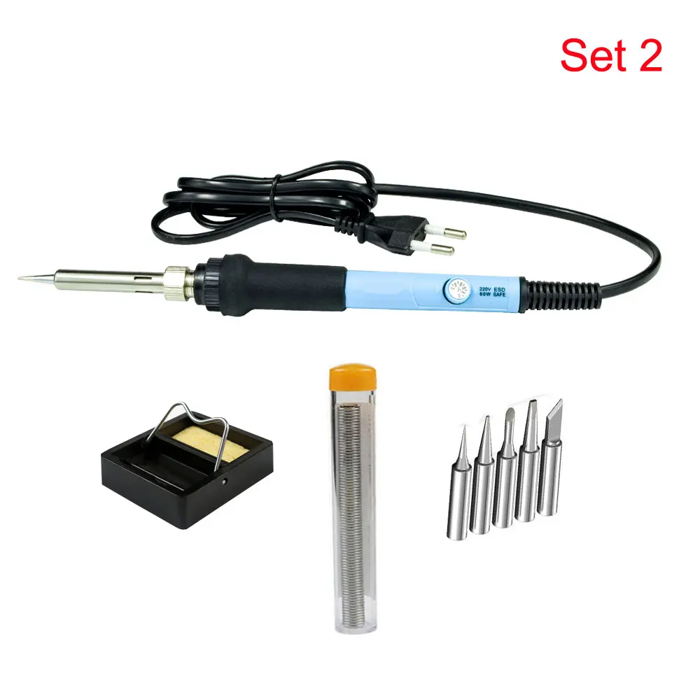 Название продукта: комплект электрического паяльника Характеристики: регулируемая температура (на валу паяльника имеется круглая ручка колеса, для удобного регулировки температуры.) Диапазон температур: 200-450 градусов по Цельсию Выходная мощность: 60 Вт Входная мощность: 110 В/220 В/230 В/240 В Штекер: EU, US, AU, UK Цвет: синий Советы: 900MT Длина из паяльник: 190 мм
