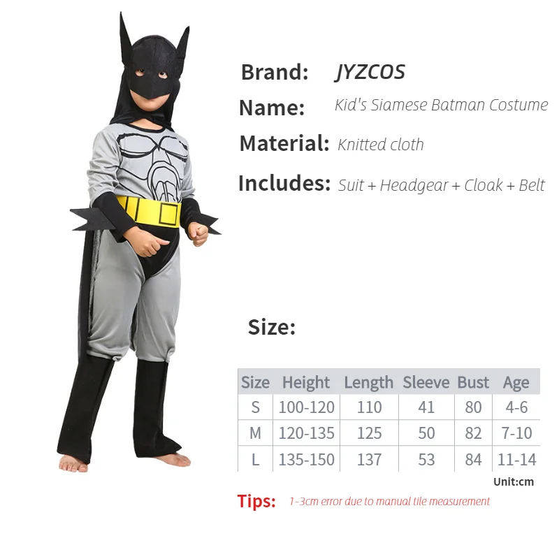 JYZCOS/Новое Детское маскарадное платье для мальчиков, комический супергерой, Бэтмен, DC Movie Character карнавальные вечерние костюмы на ХэллоуинОдежда