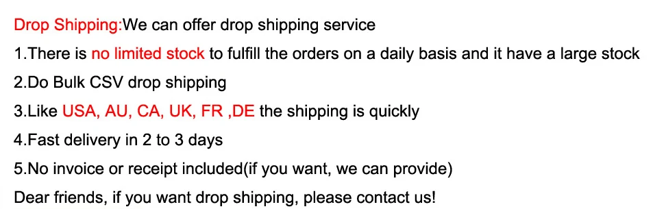 Мы отправим посылка в течение 2- 5 рабочих дней после подтверждения оплаты. Пожалуйста, убедитесь, что ваш адрес правильныйПеред покупкой.
