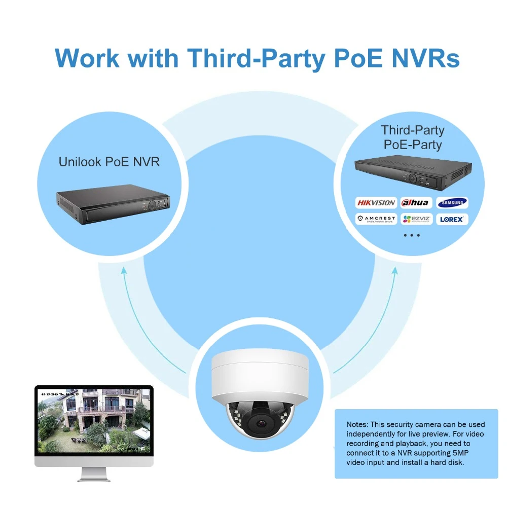 Никаких других дополнительных операций, непосредственно Подключите нашу купольную камеру безопасности Anpviz 5MP к портам Hikvision NVR POE. Личное соглашение Hikvision гарантирует, что оно "Play & Play" немедленно.