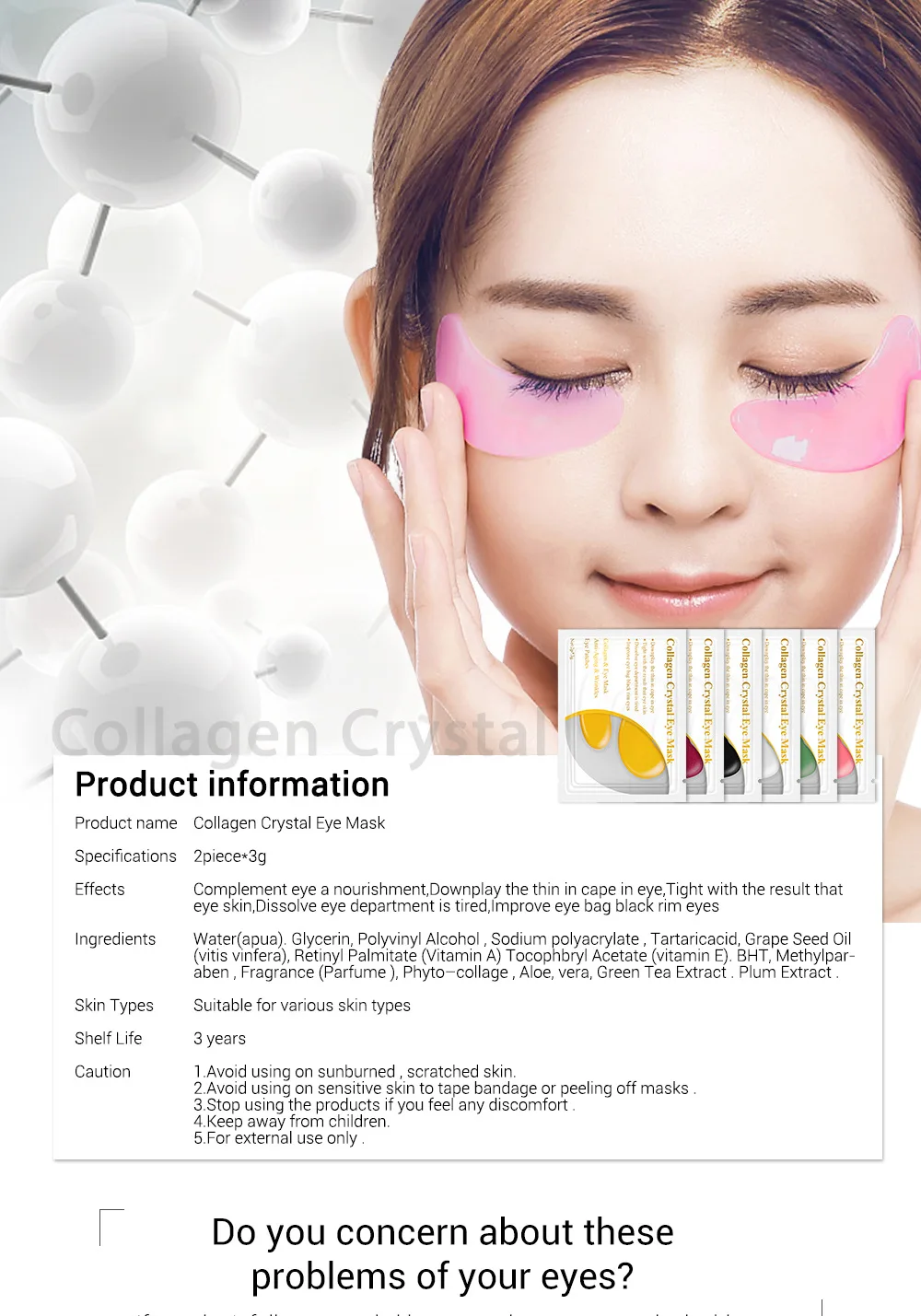Коллагеновая кристальная маска для глаз, маска для лица, гелевые патчи для глаз, мешки для глаз, морщинки, темные круги, подушечки для глаз, уход за кожей