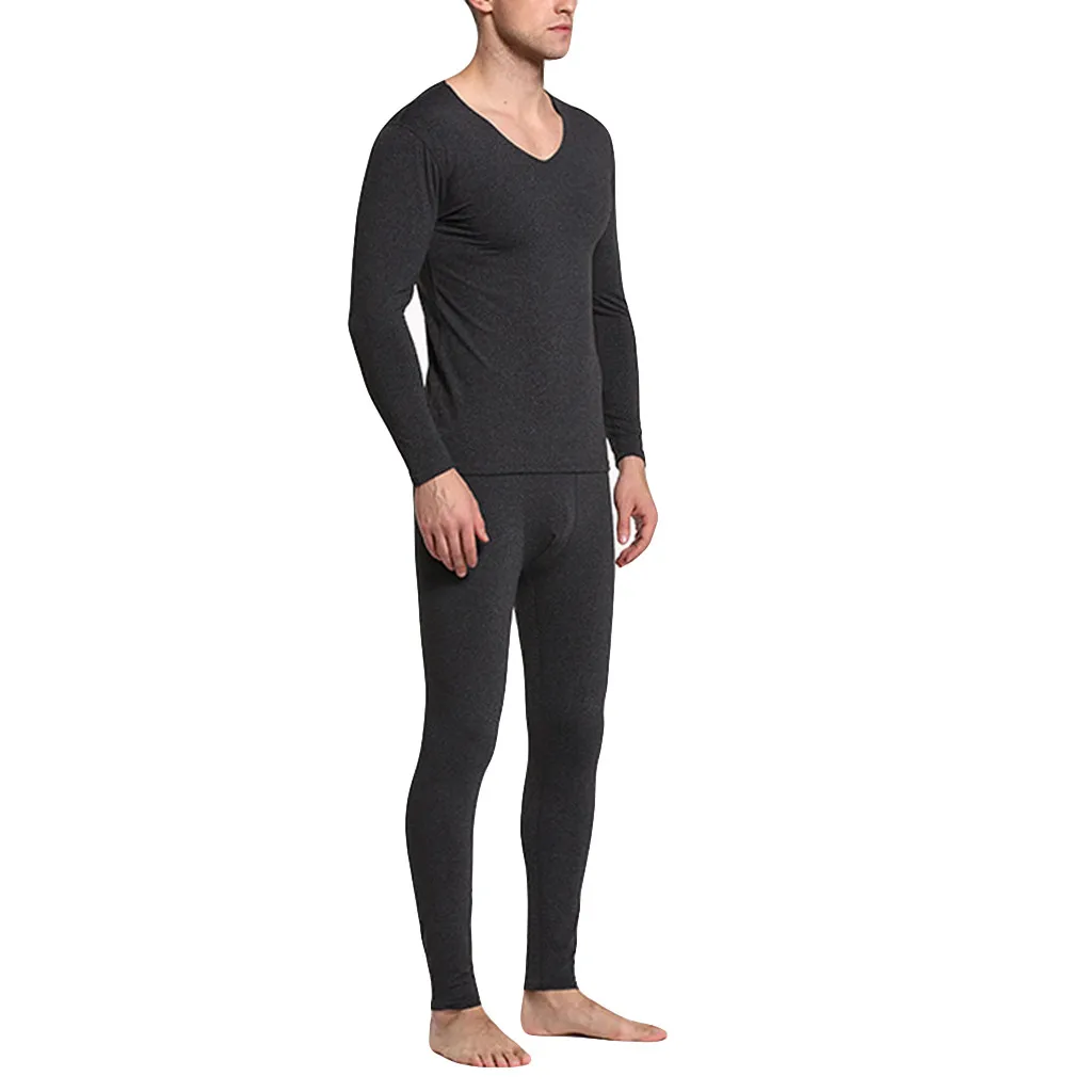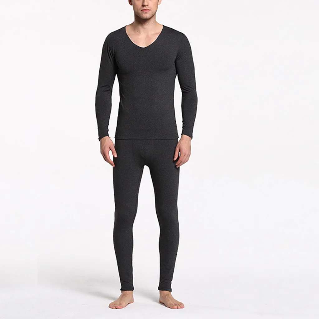 Термобелье для мужчин, Осень-зима, теплые подштанники с круглым вырезом, одноцветные, хлопковые, мягкие, дышащие, теплая внутренняя одежда, костюм
