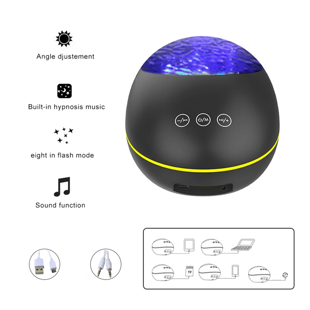 -Обновленный ночник с яркими волнами, встроенный 12 сверхярких светодиодов с вращающейся головкой проектора, наклон 0-45 градусов, который может управляться с помощью пульта дистанционного управления. 8 режимов изменения цвета принесут вам Приморский дом, подарят вам кусочек океана в несколько изменений цвета, чтобы создать расслабляющую, романтическую атмосферу.