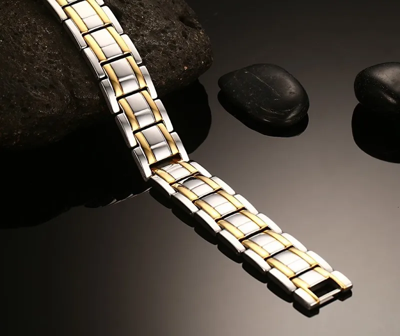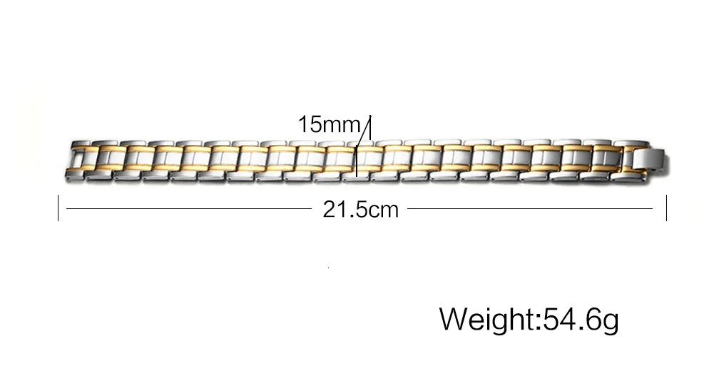 РазмерыШирина 15 мм длиной 21,5 см Вес 54,6 г Позолоченные здоровые магнитные браслеты и браслеты, мужские ювелирные изделия