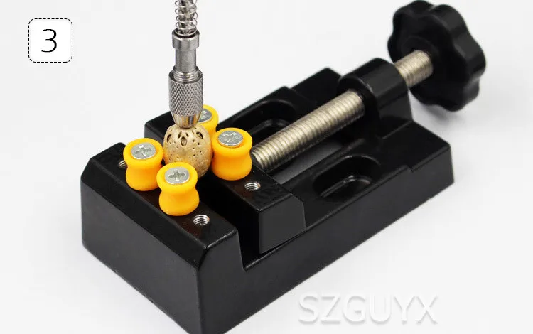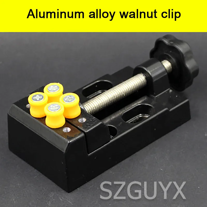 Название: зажим для грецкого ореха из алюминиевого сплава Вес нетто около: 0,265 кг Размер: 110*61*35 мм Материал: алюминиевый сплав Ширина челюсти: 55 мм Максимальный диаметр отверстия: 55 мм